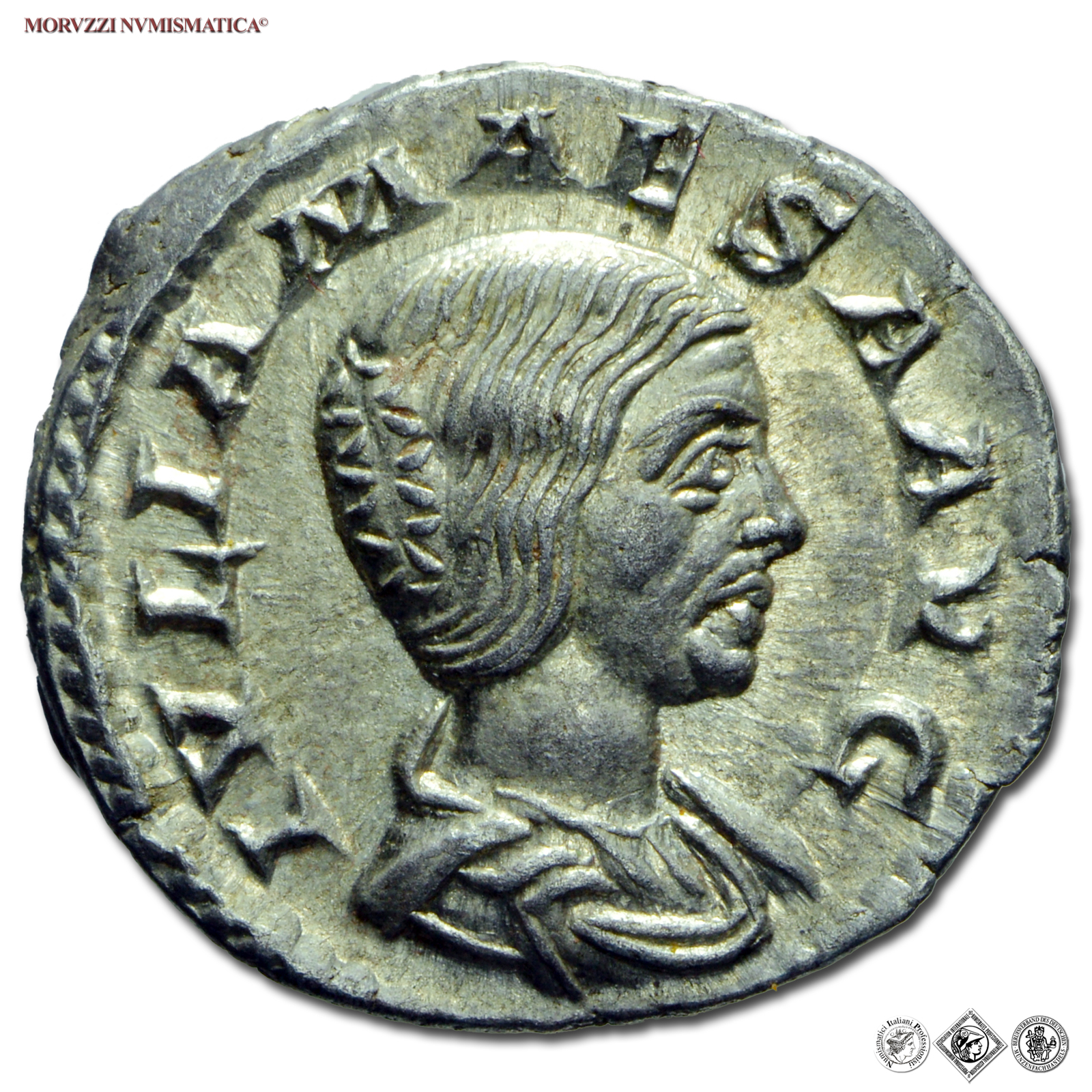 GIULIA MESA, Nonna di Elagabalo, DENARIO, Emissione: 218-222 d.C., Zecca di Roma, Rif. bibl. R.I.C., 272; Cohen, 45; Metallo: AR, gr. 3,19, (MR150040), Diam.: mm. 18,68, SPL