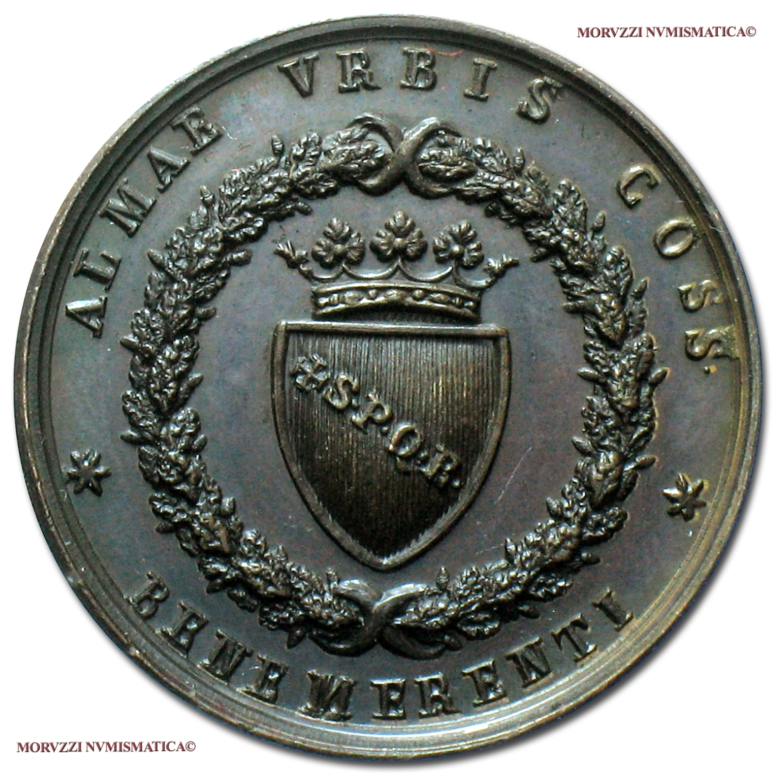 Medaglia premio coniata, realizzata nel 1842 per omaggiare i benemerenti della Città di Roma.