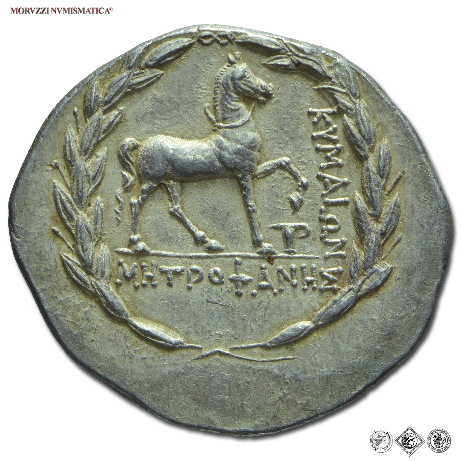 KYME, TETRADRAMMA, Emissione: 165-140 a.C., Zecca di Kyme, Magistrato: Metrophanes, Rif. bibl. SNG Dan., 104; Metallo: AR, gr. 16,72, (MG148987), Diam.: mm. 31,93, mSPL