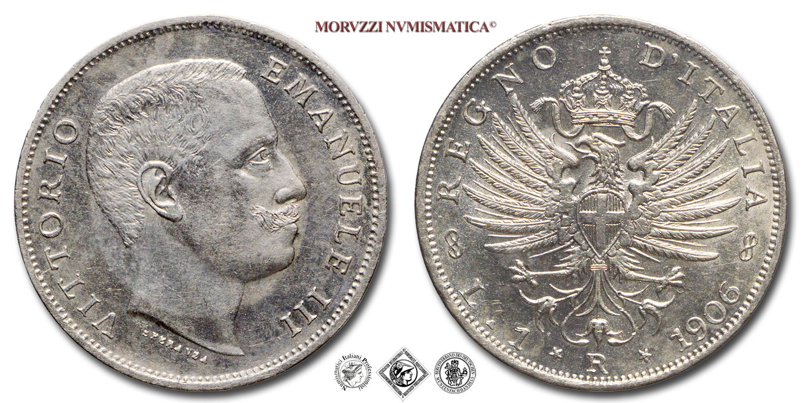 Regno d'Italia, VITTORIO EMANUELE III, LIRA, Aquila Sabauda, 1906, Zecca di Roma, ARGENTO, FDC, (Pagani 766) / monete italiane moderne d'argento (moneta italiana moderna da collezione - Casa Savoia)