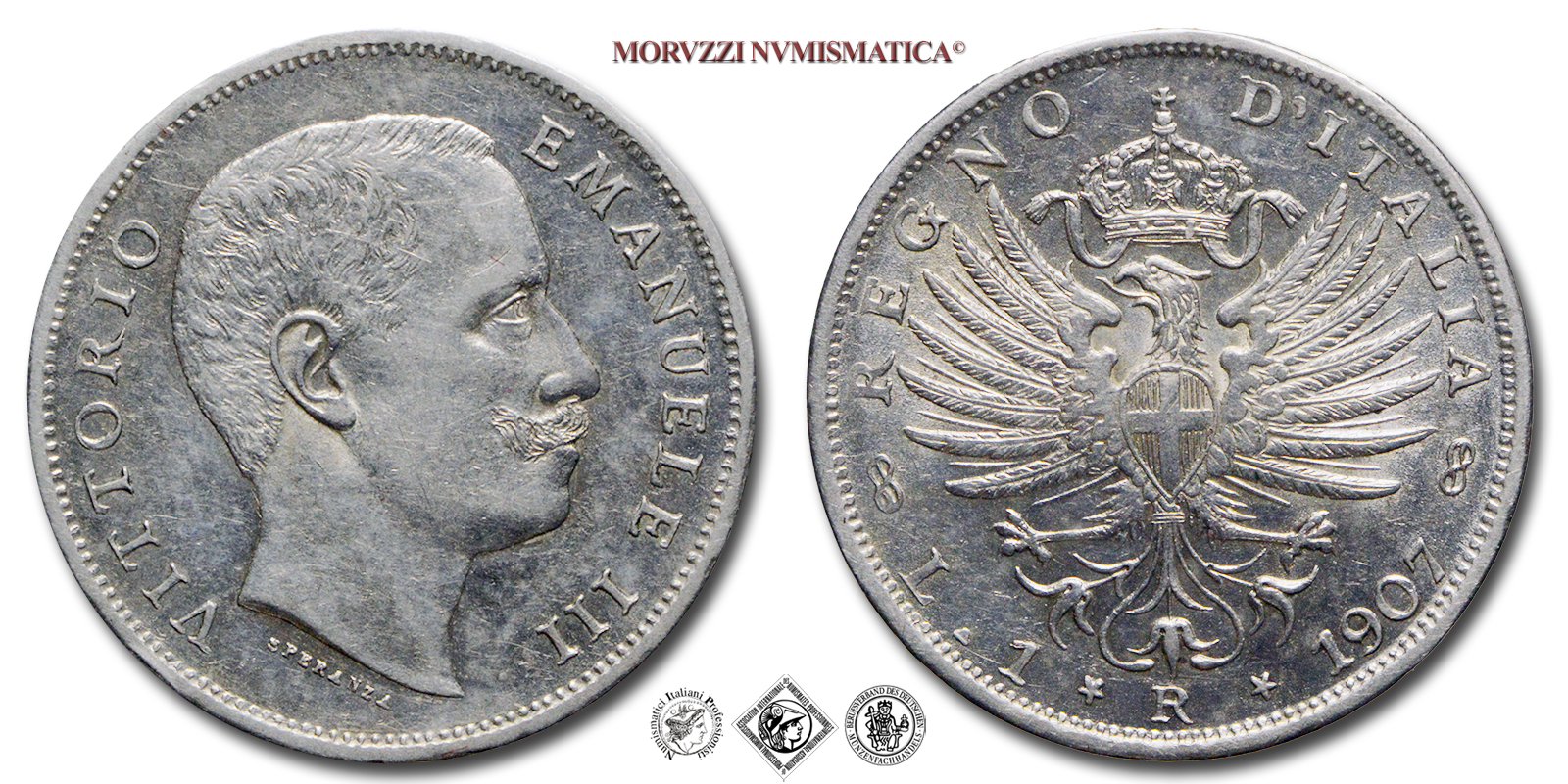 Regno d'Italia, VITTORIO EMANUELE III, LIRA, Aquila Sabauda, 1907, Zecca di Roma, ARGENTO, FDC, (Pagani 767) / monete italiane moderne d'argento (moneta italiana moderna da collezione - Casa Savoia)