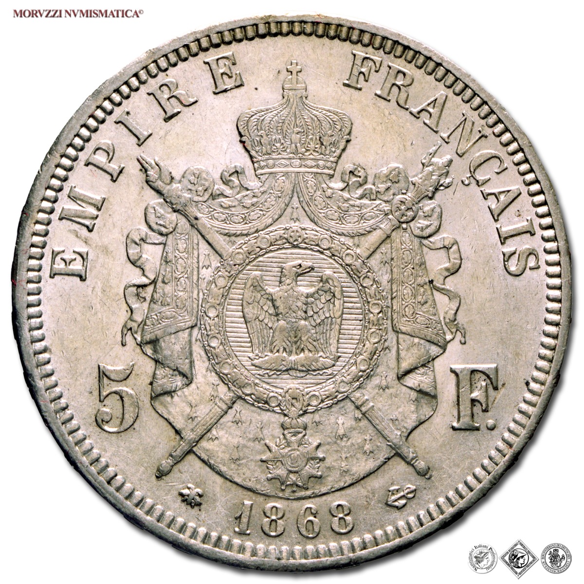 Francia, NAPOLEONE III, 5 FRANCHI, 1868 A, Zecca di Parigi, ARGENTO, FDC, (Gadoury 739) / France Napoléon III Empereur des Français 5 FRANCS Paris pièces de monnaies françaises (monete mondiali europee francesi d'argento - moneta francese)