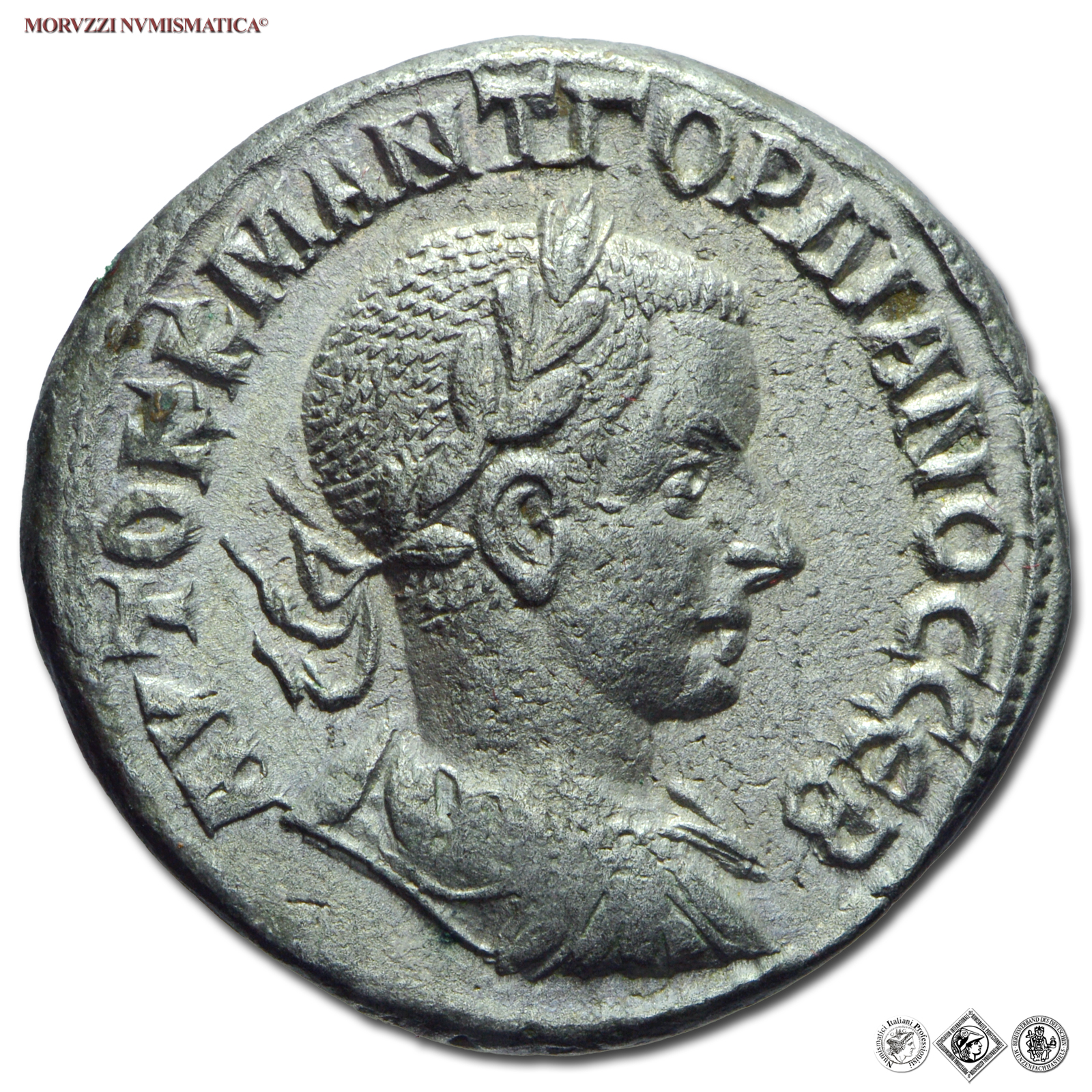 GORDIANO III PIO, 238-244 d.C., TETRADRAMMA, Emissione: 242 d.C., Zecca di Antiochia (Siria), Rif. bibl. Prieur, 295; Metallo: AR, gr. 12,58, (MR148302), Diam.: mm. 26,28, SPL