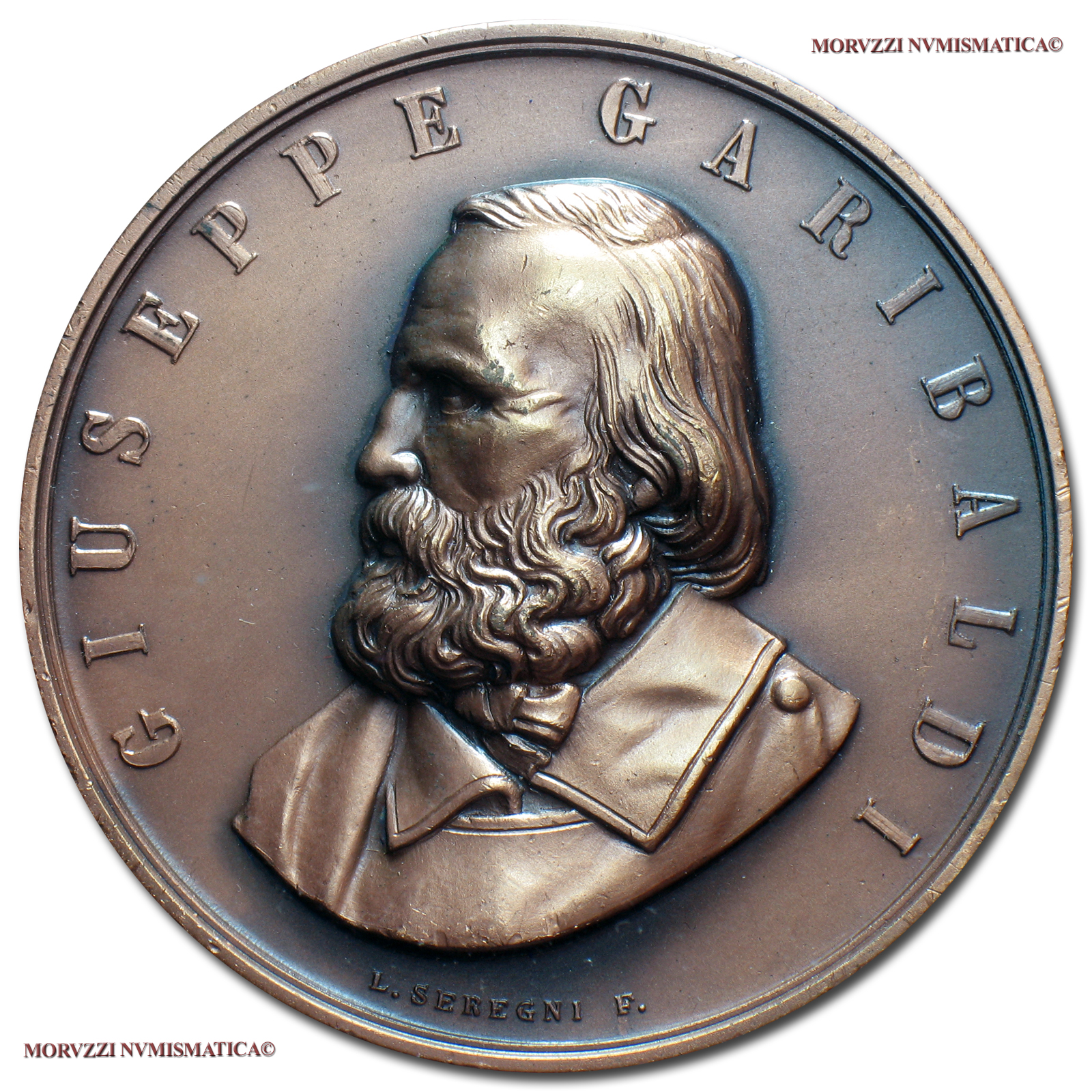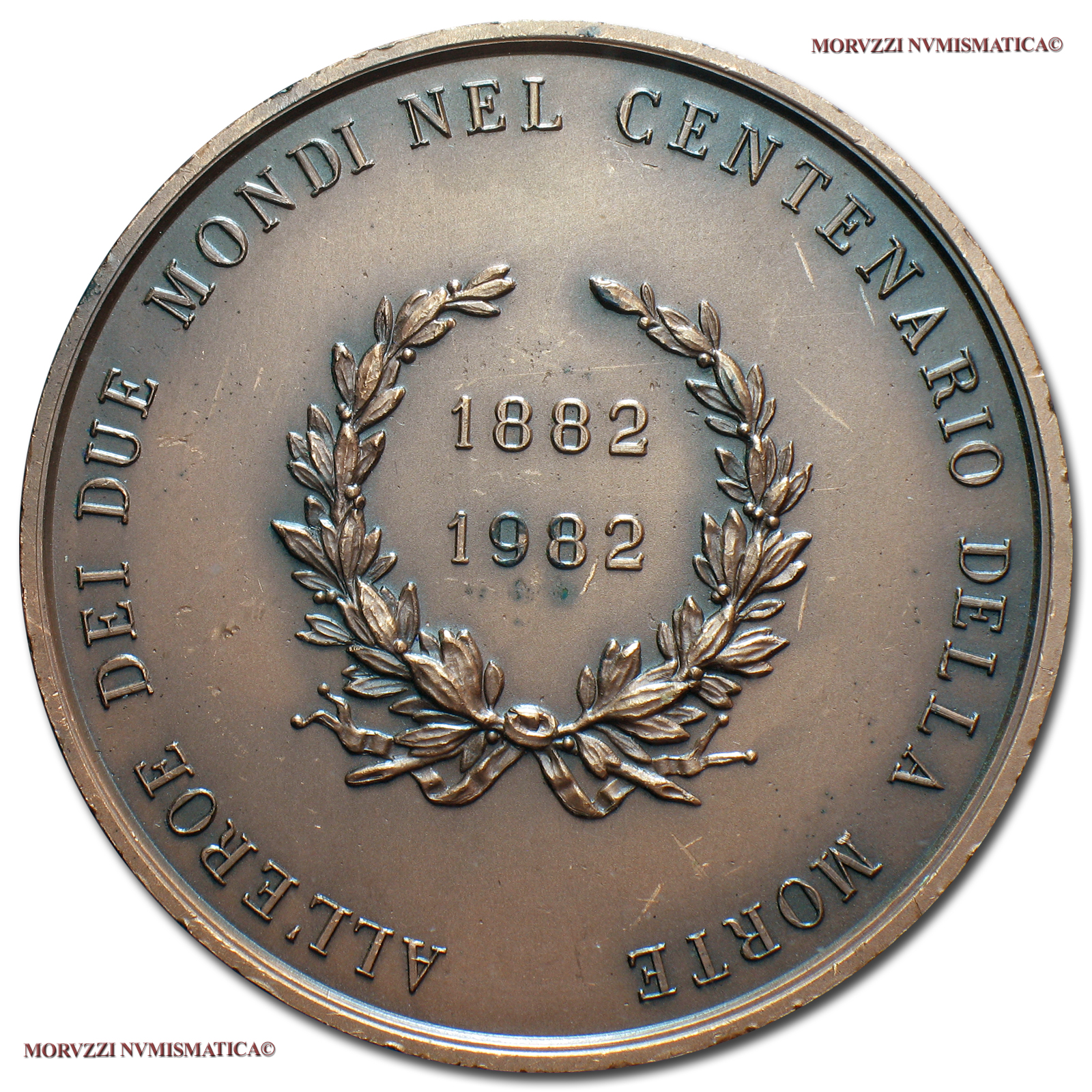 Italia, GIUSEPPE GARIBALDI, MEDAGLIA IN BRONZO, 1982, Centenario della morte, Opus Luigi Seregni, FDC / medaglie italiane moderne commemorative da collezione