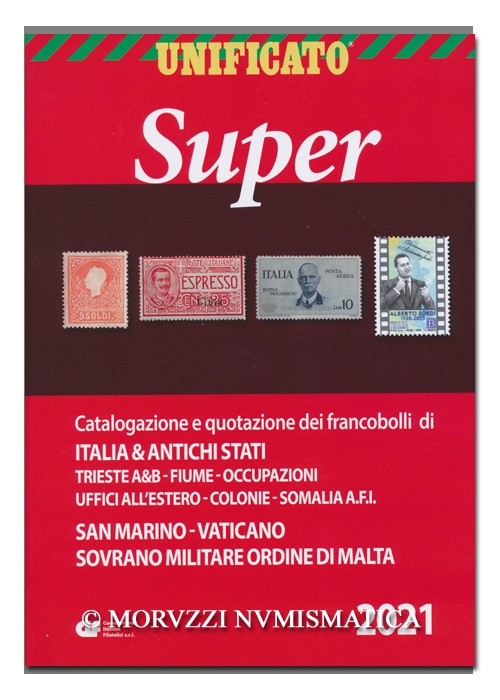 AA.VV., Unificato Super 2021, Catalogazione e quotazione dei francobolli di Italia e Antichi Stati, Trieste A & B, Somalia, Fiume, occupazioni, Uffici all'estero, Colonie, San Marino, Vaticano, S. M. ordine di Malta, Europa Unita / cataloghi di filatelia