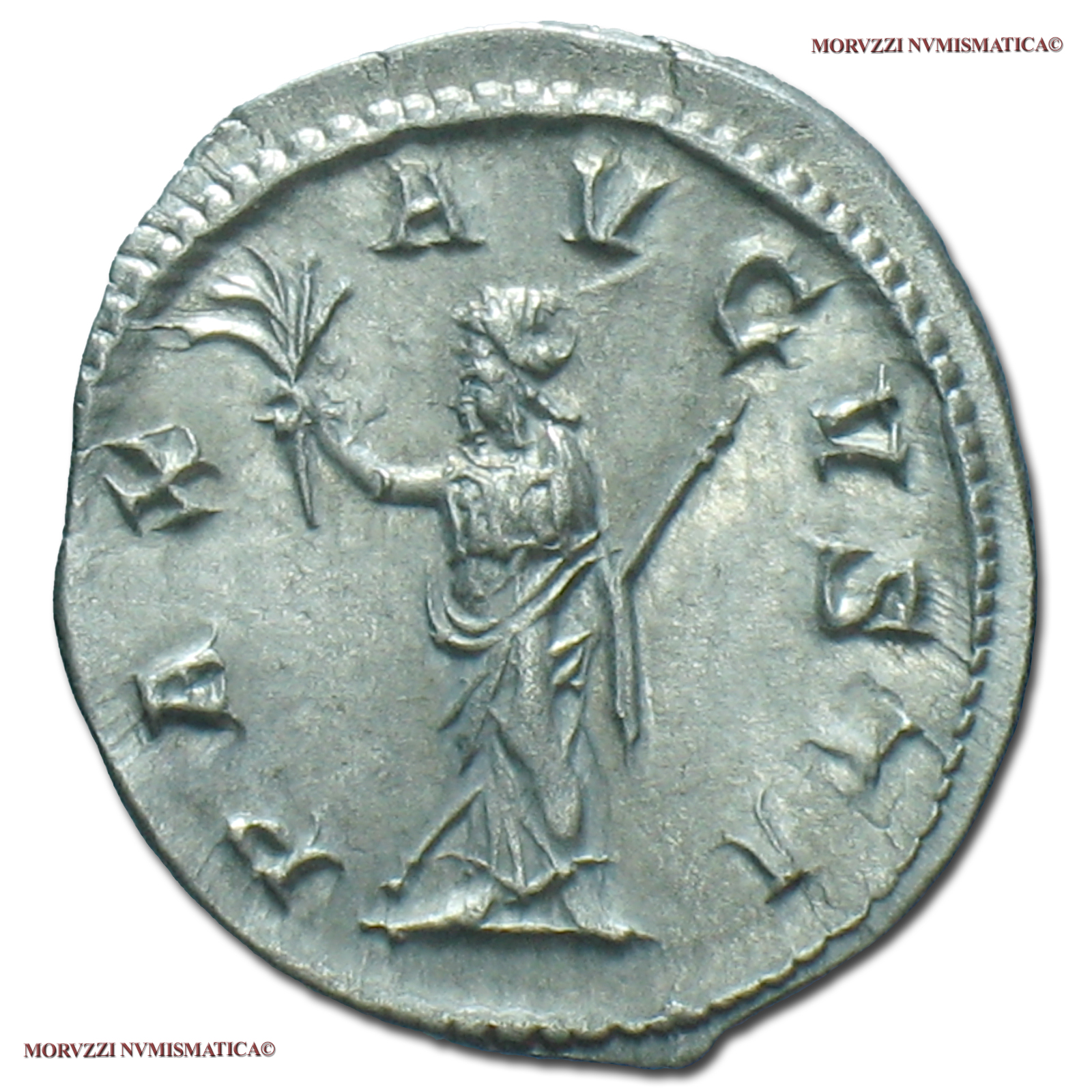 Impero Romano, MASSIMINO I IL TRACE, 235-238 d.C., DENARIO, Emissione: 236-238 d.C., D/ MAXIMINVS PIVS AVG GERM, busto laureato con paludamento e corazza visto di spalle a d., R/ PAX AVGVSTI, la Pax stante a s. con ramoscello di ulivo nella mano d. e scettro nella s., Zecca di Roma, Rif. bibl. R.I.C., 19; Cohen, 37; Metallo: AR, gr. 2,72, (MR8517), Diam.: mm. 18,96, mSPL