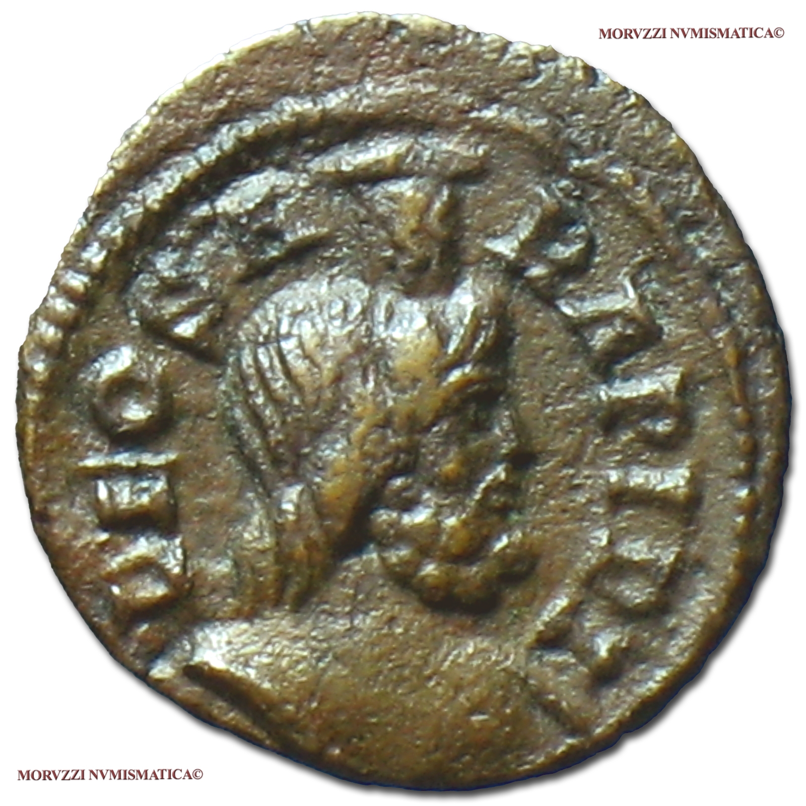 Impero Romano, MASSIMINO II DAIA, 310-313 d.C., PICCOLO BRONZO (Emissione per il Festival di Iside), Emissione: 310-313 d.C., D/ DEO SARAPIDI, busto di Serapide a d., R/ SANCTO NILO / ALE, il Nilo sdraiato a s. con papiro nella mano d. e cornucopia nella s., Zecca di Alessandria, Rif. bibl. Alföldi Taf. IV, 35; Cohen, Julian II, 37; Metallo: AE, gr. 0,80, (MR23925), Diam.: mm. 12,01, qSPL, (R)