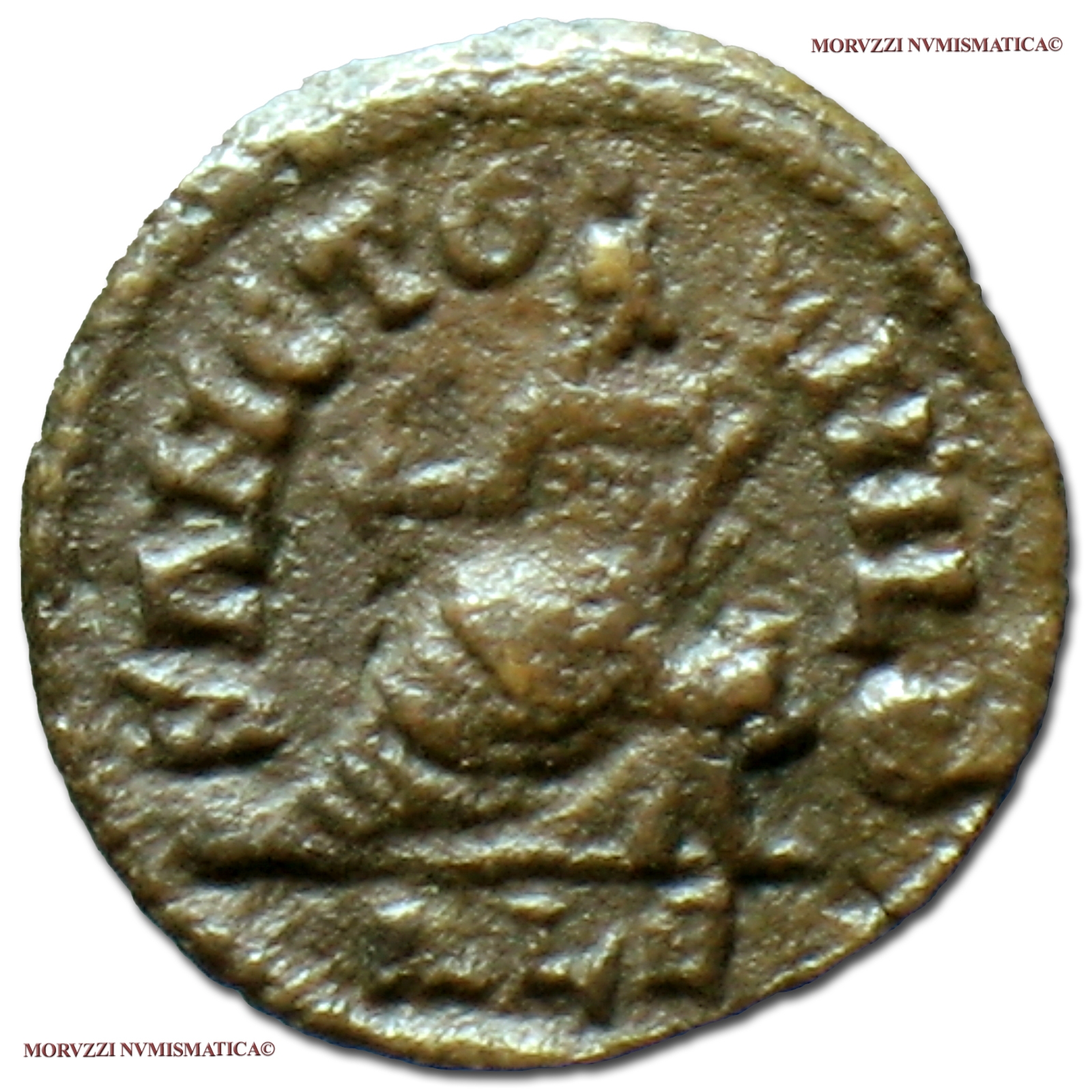 La moneta è molto usurata e, se i rilievi originariamente erano poco rilevati, alcune parti dell'esemplare possono non essere leggibili.