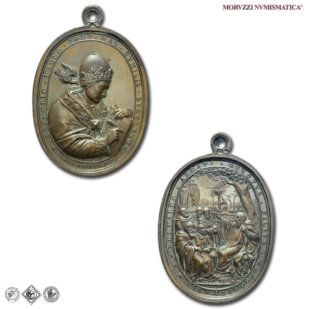 Stato Pontificio, SAN GREGORIO MAGNO, MEDAGLIA OVALE IN BRONZO, 1831, S. Gregorio Magno-S. Romualdo, Opus Giuseppe Cerbara, mSPL, (R), (Boccia 13) / medaglia papali pontificie rare da collezione