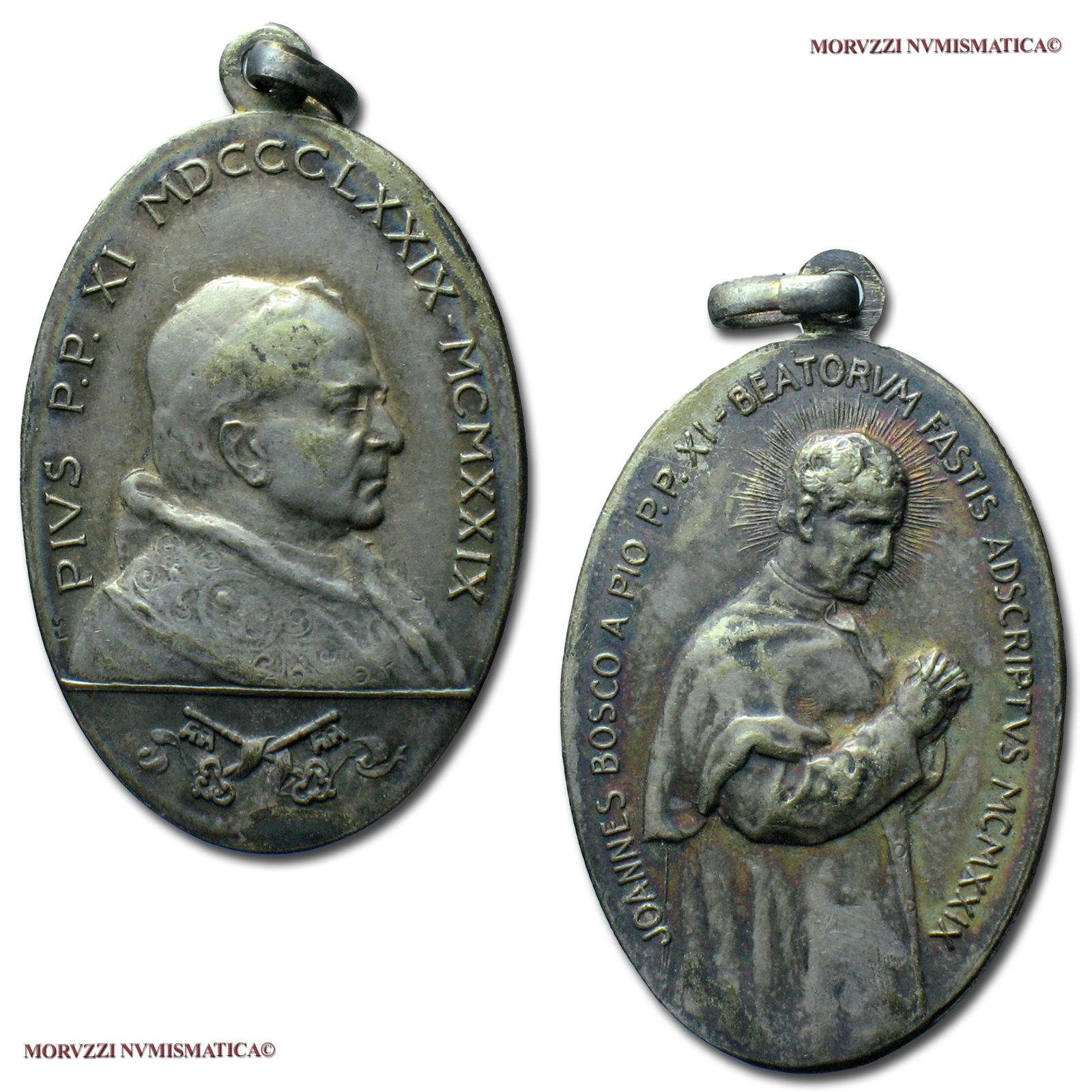 Chiesa Cattolica, PIO XI, MEDAGLIA STRAORDINARIA COMMEMORATIVA IN BRONZO ARGENTATO, 1929, Beatificazione di Giovanni Bosco, Opus Albino Dal Castagné ed Enrico Faré (Stabilimento Stefano Johnson di Milano), SPL, (Cusumano-Modesti 181) / medaglie papali