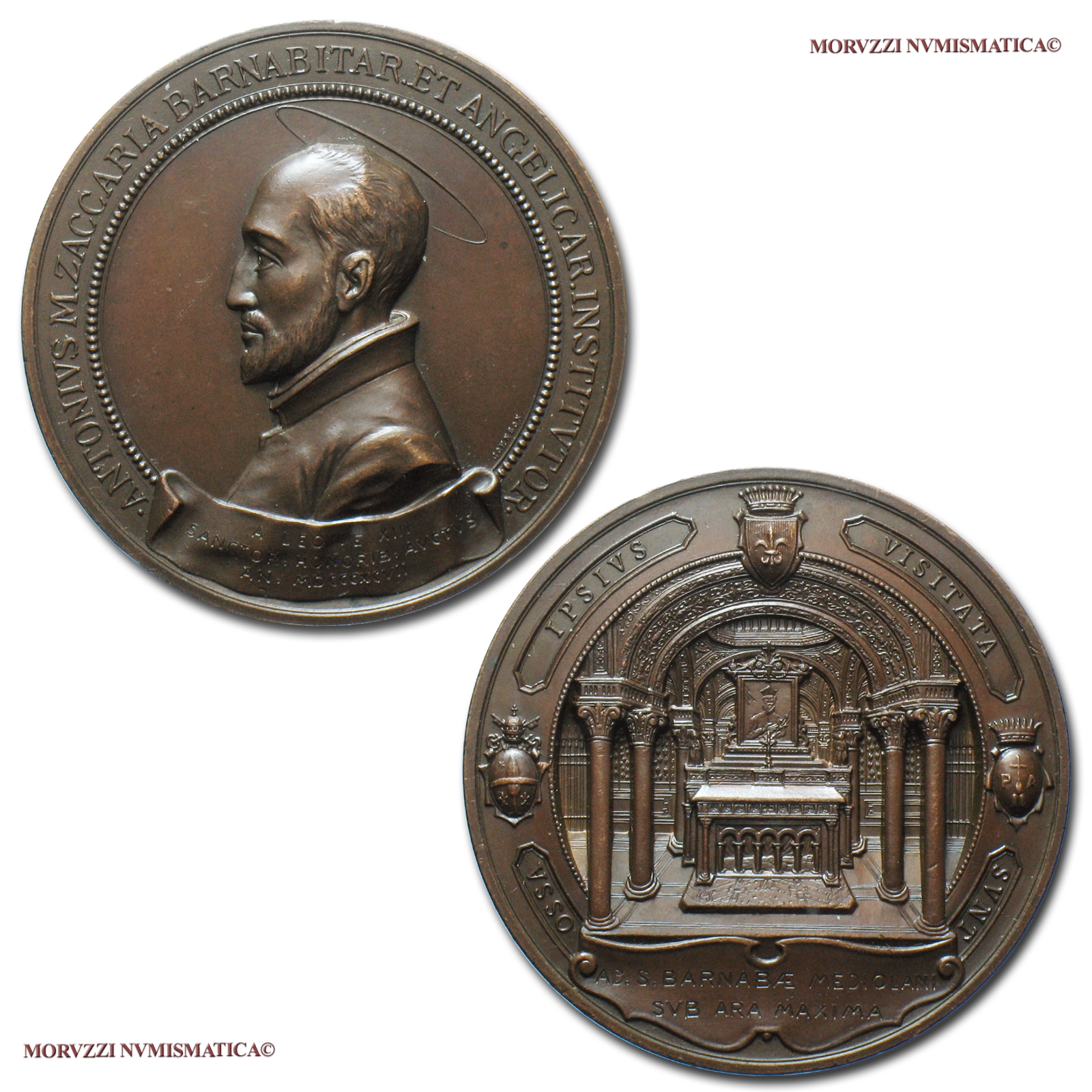 Chiesa Cattolica, ANTONIO MARIA ZACCARIA, MEDAGLIA STRAORDINARIA IN BRONZO, 1897, altare maggiore della chiesa di San Barnaba in Milano, Stabilimento Stefano Johnson, qFDC, (Modesti 283) / medaglie delle Chiese d'Italia