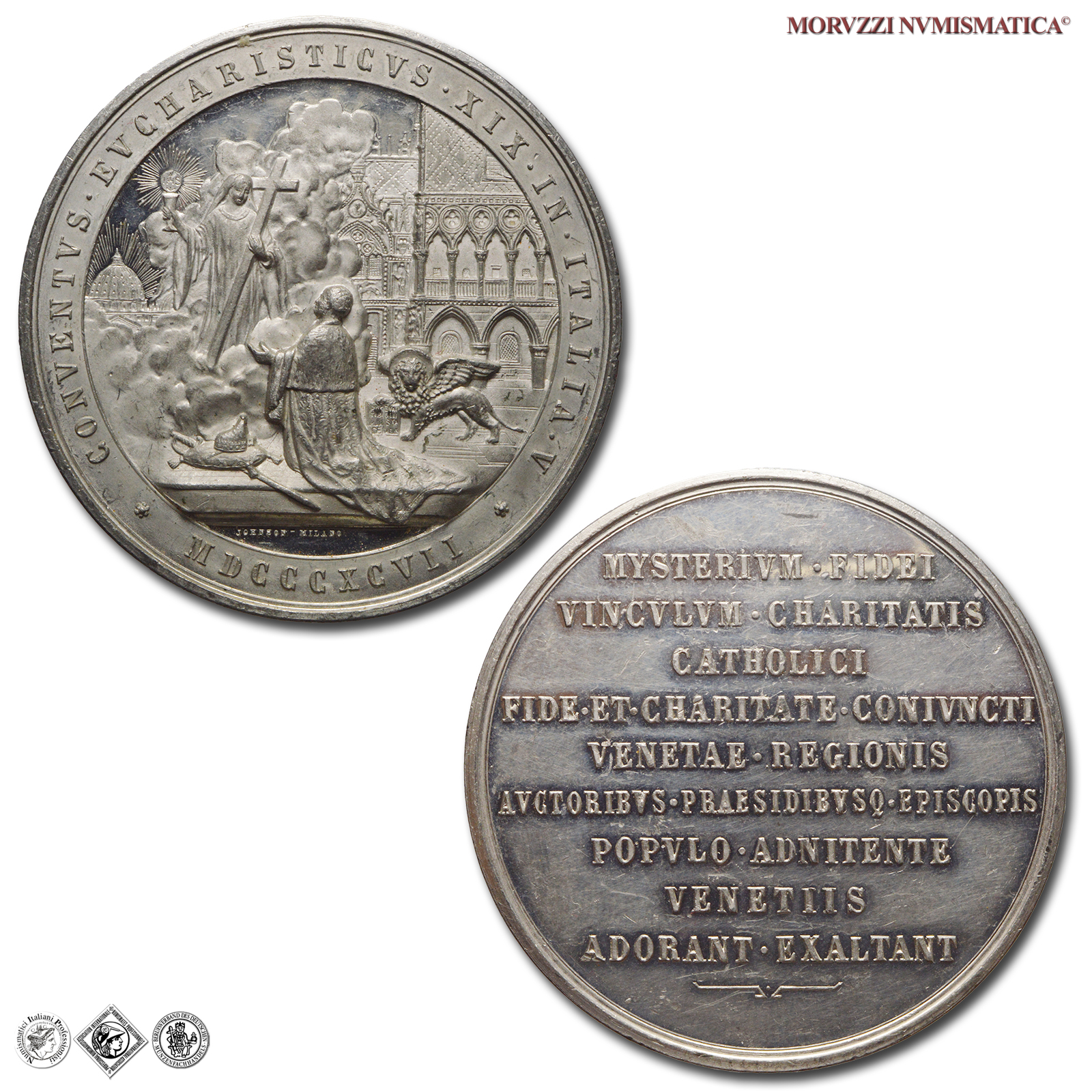 Italia, VENEZIA, MEDAGLIA IN METALLO BIANCO, XIX Congresso Eucaristico Nazionale, 1897, Opus Giovanni Del Soldato, FDC, (R), (150° Johnson 570) / medaglie italiane commemorative rare da collezione