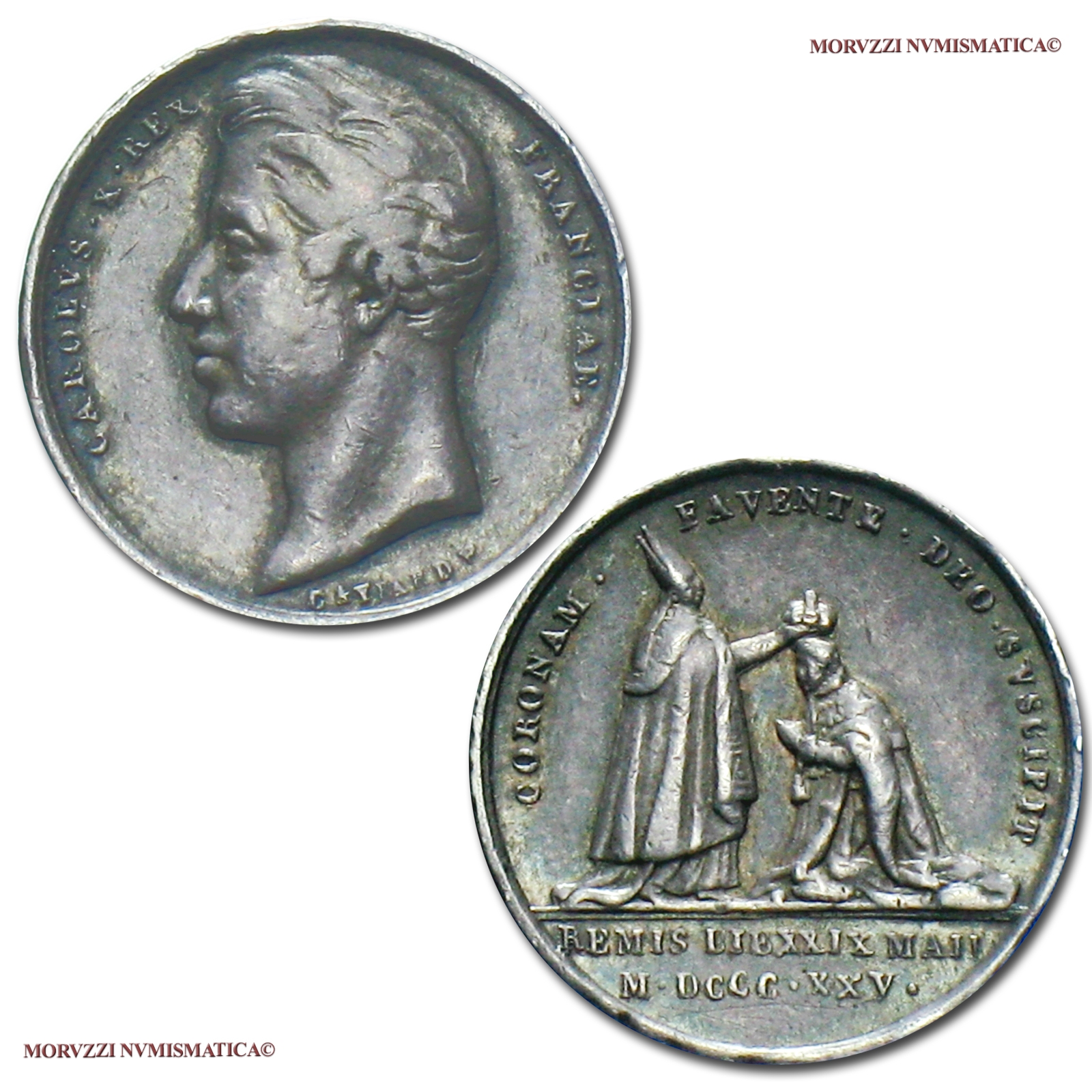 Francia, CARLO X, GETTONE IN ARGENTO, 1825, arcivescovo incorona il re Carlo, Opus Gayrard, BB / France Charles X Jeton d'argent SILVER TOKEN (gettone d'argento)