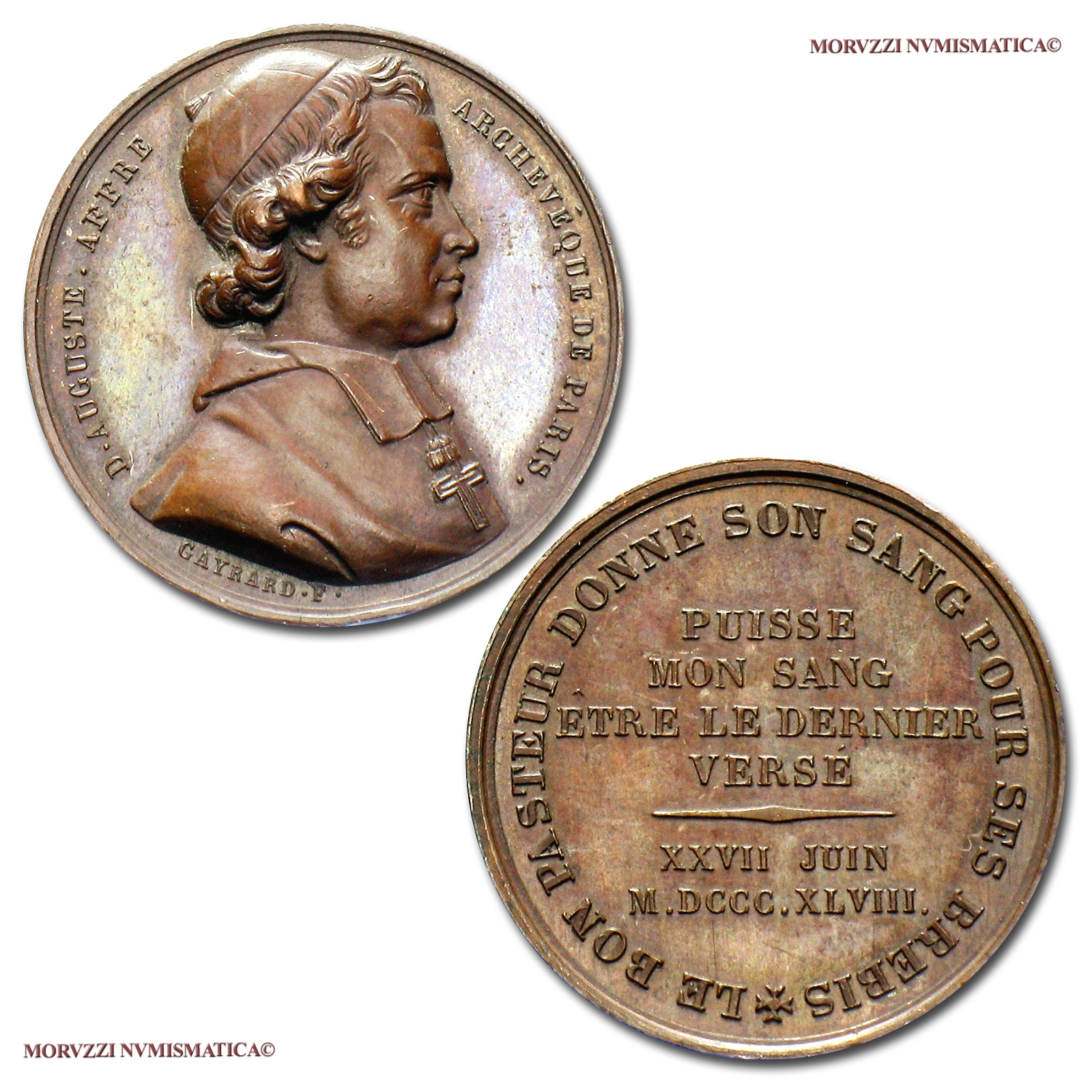 Francia, DENIS AUGUSTE AFFRE, MEDAGLIA IN BRONZO, 1848, Morte dell'arcivescovo, Opus Gayrard, qFDC, (NC) / Médaille de bronze pour la mort de l'archevêque et martyr Denys Auguste Affre (Médailles françaises - medaglie mondiali di bronzo)