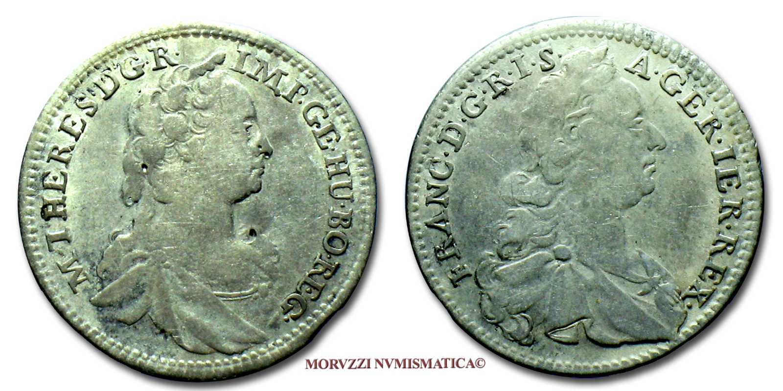 Austria, MARIA TERESA e FRANCESCO I, MEDAGLIETTA IN ARGENTO, 1740-1765, qBB, (NC) / Silbermedaillen von Maria Theresa of Austria and Francis I (WORLD SILVER MEDALS - medaglie mondiali europee austriache d'argento)