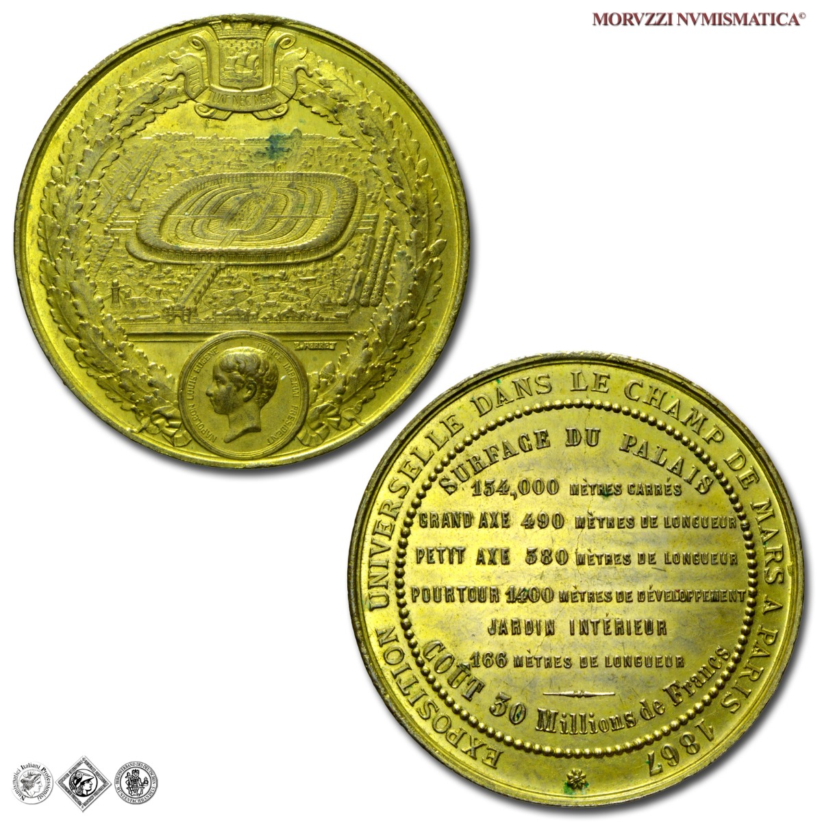 Francia, ESPOSIZIONE UNIVERSALE, MEDAGLIA IN BRONZO DORATO, 1867, Opus E. Ferret, SPL / Médaille de bronze pour l'Exposition universelle de 1867 sur le Champ-de-Mars à Paris (Médailles françaises - medaglie francesi da collezione)