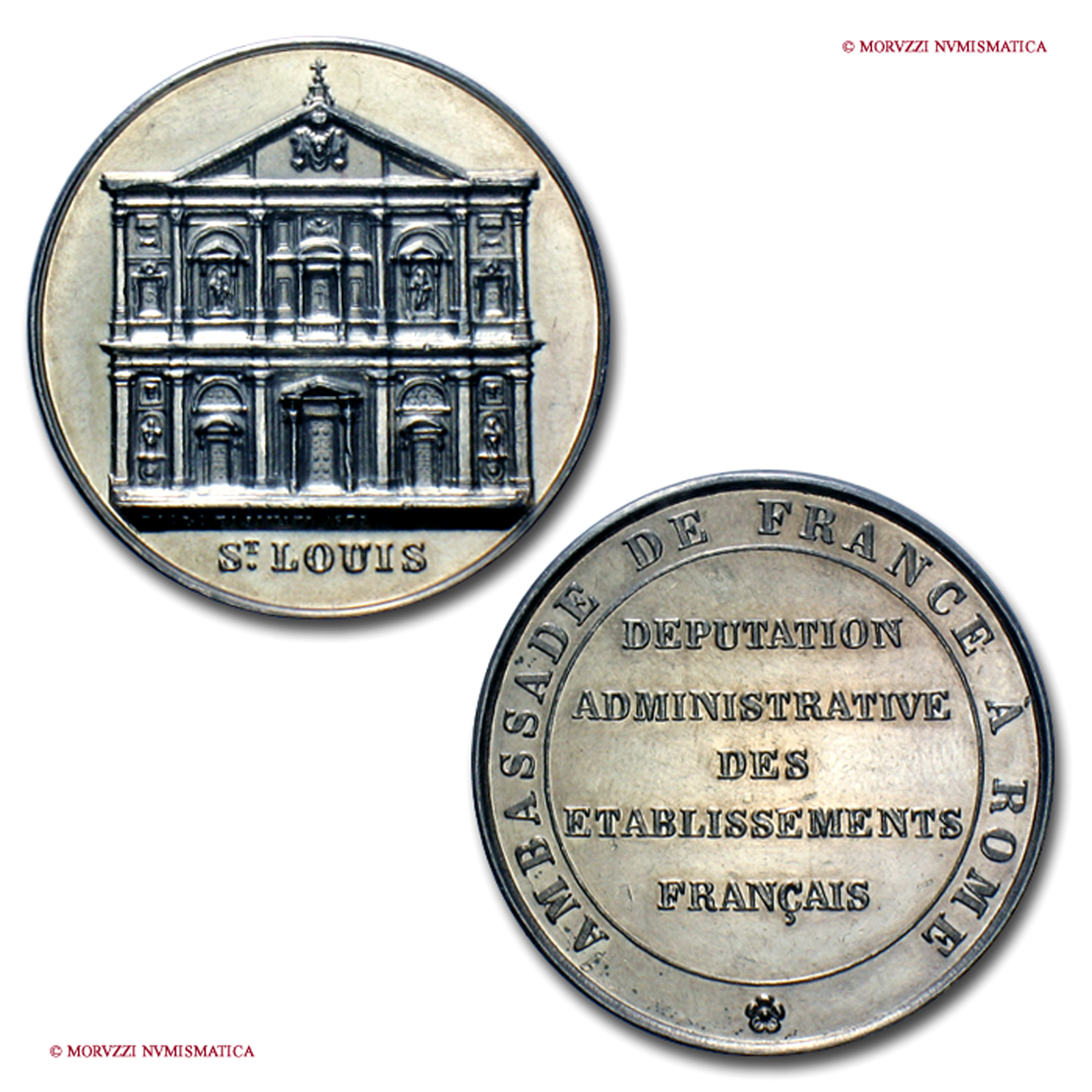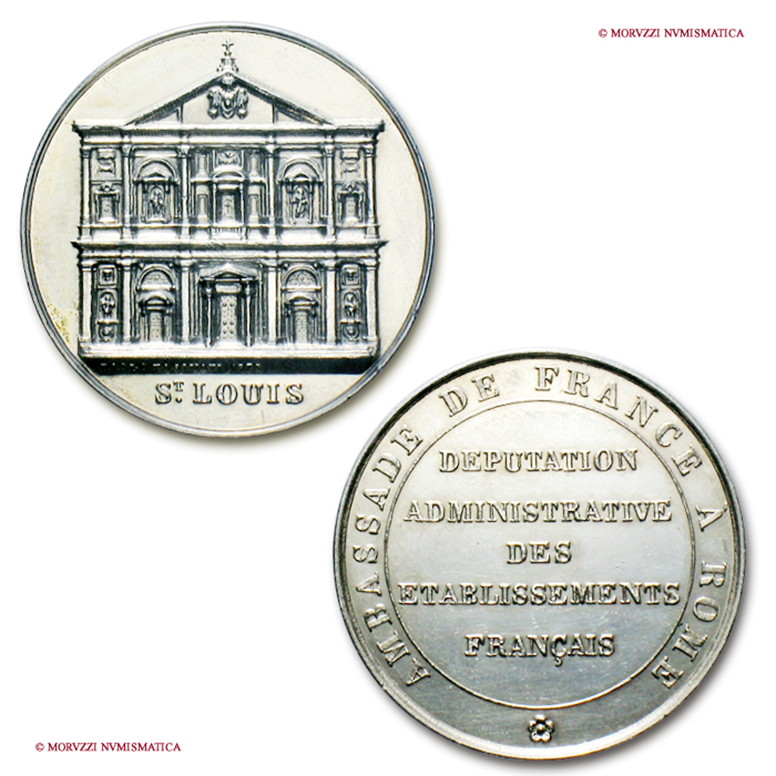 Francia, AMBASCIATA DI FRANCIA A ROMA, MEDAGLIA IN ARGENTO, 1875, Chiesa di S. Luigi dei Francesi, Opus Pasinati, FDC / medaglie francesi d'argento (France médailles d'argent Église Saint-Louis-des-Français de Rome - French SILVER MEDALS)