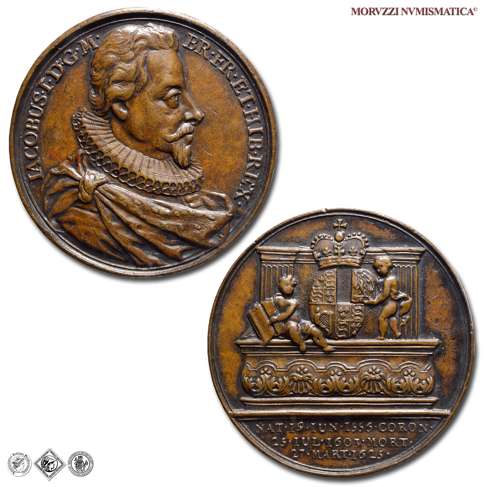 Gran Bretagna, GIACOMO I, MEDAGLIA IN BRONZO, 1731, Serie "Kings and Queens of England", Opus J. Dassier, SPL, (Eimer 104) / James I, King of England and Ireland BRONZE MEDALS (medaglie mondiali europee inglesi da collezione)