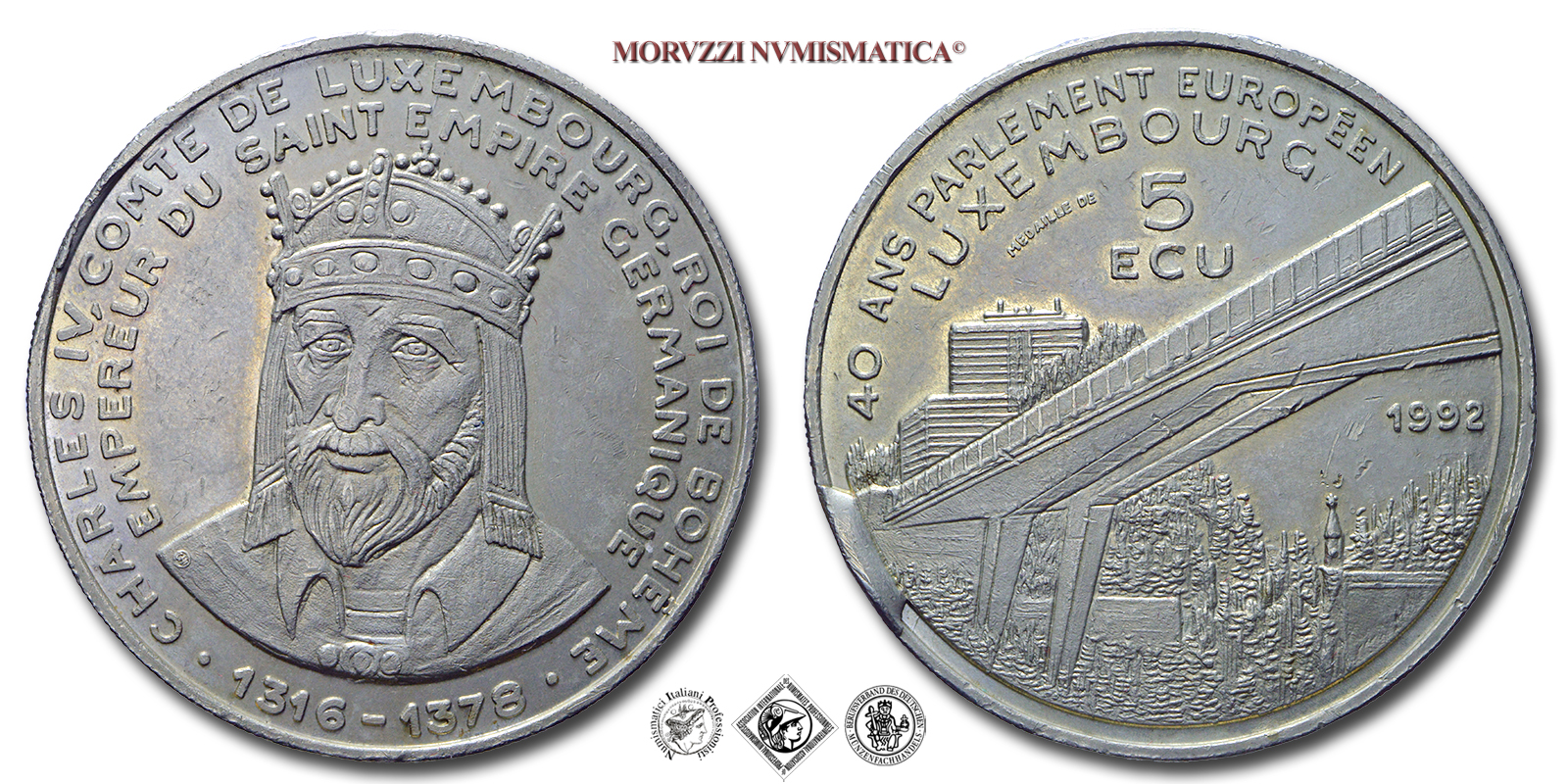 Lussemburgo, GRANDUCATO, MEDAGLIA DA 5 ECU, 40 anni del Parlamento europeo, 1992, Zecca di Balerna, Valcambi SA, mBB / 40 ANS PARLEMENT EUROPÉEN LUXEMBOURG MEDAILLE DE 5 ECU 1992 (medaglie mondiali europee commemorative da collezione)