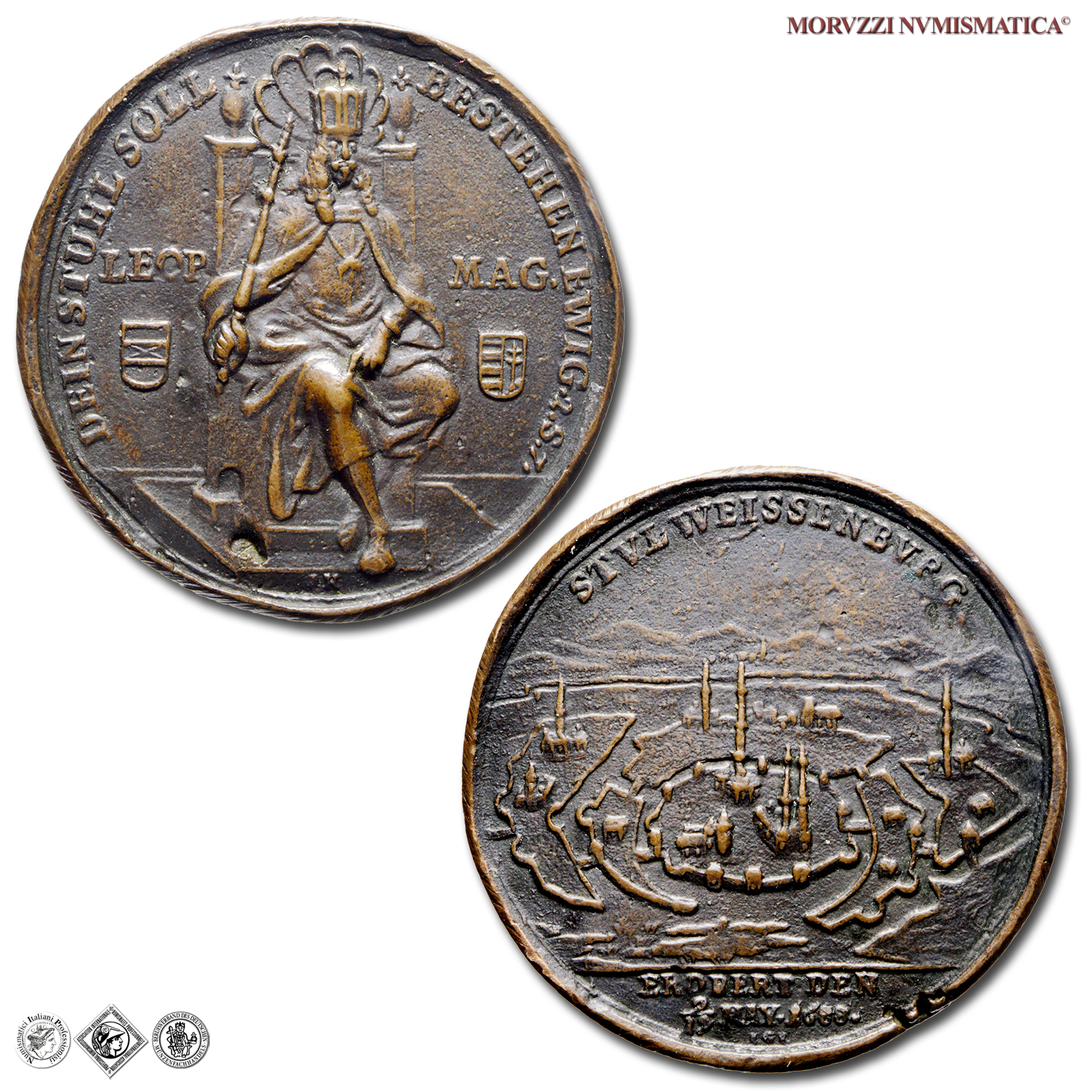 Ungheria, LEOPOLDO I, MEDAGLIA FUSA IN BRONZO, 1688, qBB, (RR), (HTÉ 543) / Leopold I, King of Hungary World BRONZE medals (medaglie mondiali europee ungheresi fuse rare da collezione - I. Lipót magyar király bronzérem)