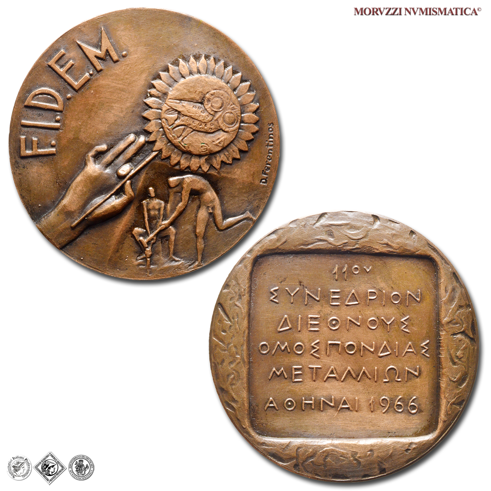 Grecia, FEDERAZIONE INT. DELLA MEDAGLIA, MEDAGLIA IN BRONZO, 11a conferenza biennale della federazione medaglie, 1966, Opus D. Ferentinos, FDC, (NC) / medaglie europee greche moderne commemorative