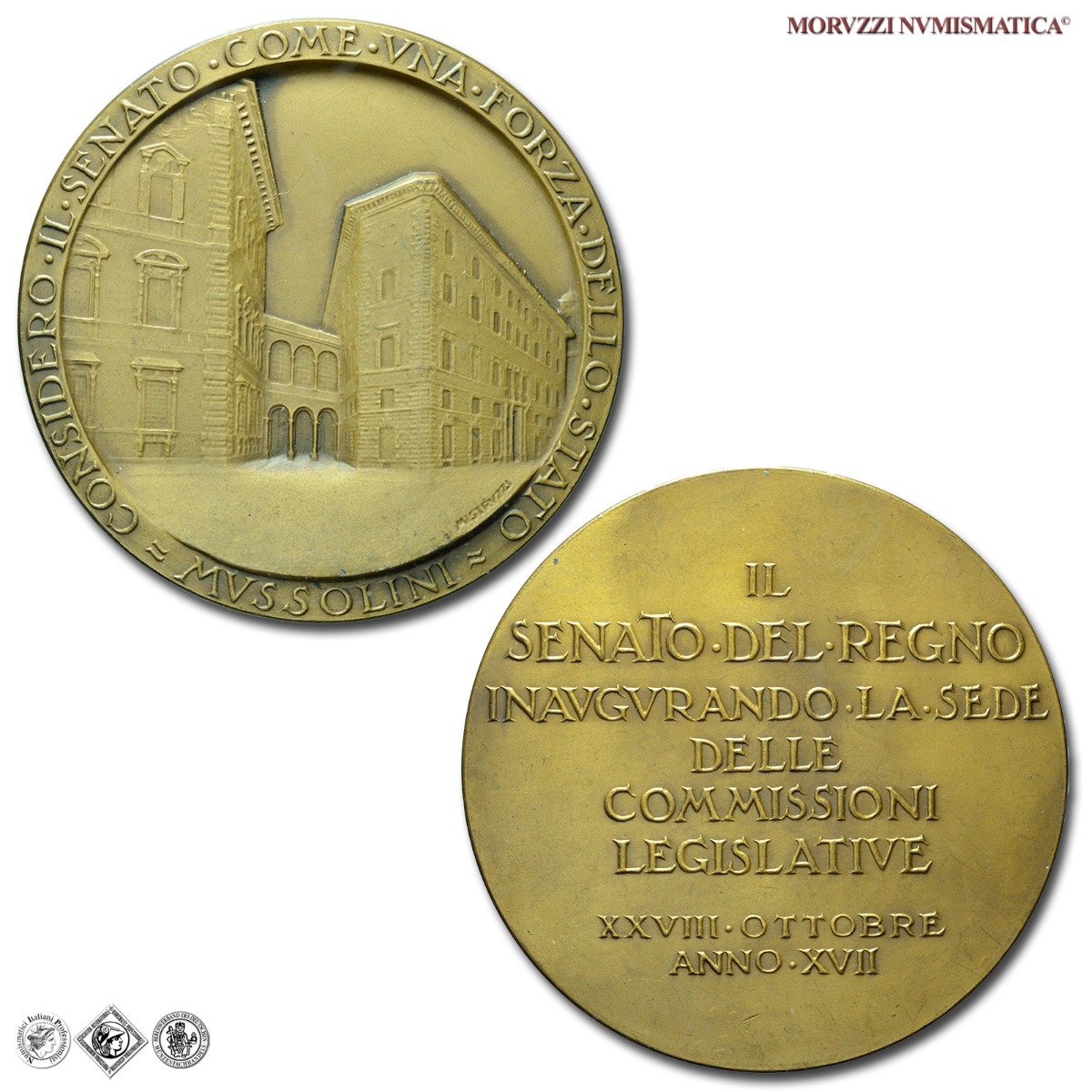 Italia, PERIODO FASCISTA, MEDAGLIA IN BRONZO, 1938 EF XVII, Senato del Regno Sede Comm. Legislative, Opus Aurelio Mistruzzi, FDC, (NC), (Casolari XVII-3) / medaglie italiane del Ventennio Fascista (medaglie fasciste da collezione - fascismo italiano)