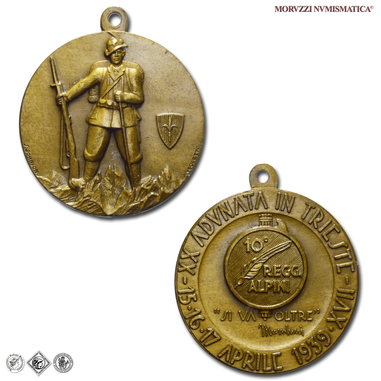 Italia, REGGIMENTO ALPINI, MEDAGLIA, 1939, 20° Adunata Nazionale Alpini Trieste, Opus Angoletta Bruno, qFDC, (Casolari XVII-59) / medaglie italiane del Ventennio Fascista (medaglie fasciste da collezione - epoca fascista - fascismo italiano)