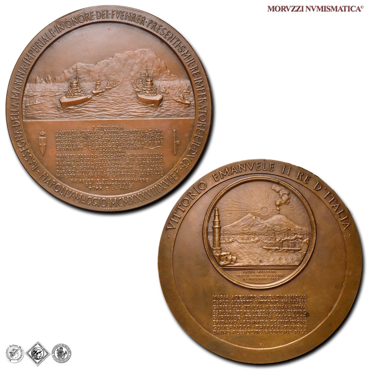 Napoli, VIAGGIO DI HITLER, MEDAGLIA IN BRONZO mm. 111,45, 1938, Viaggio di Hitler in Italia - Rassegna Navale, Opus Giuseppe Romagnoli, mSPL, (RRR), (Casolari XVI/9) / medaglie italiane rare del Ventennio Fascista (medaglie fasciste - fascismo italiano)