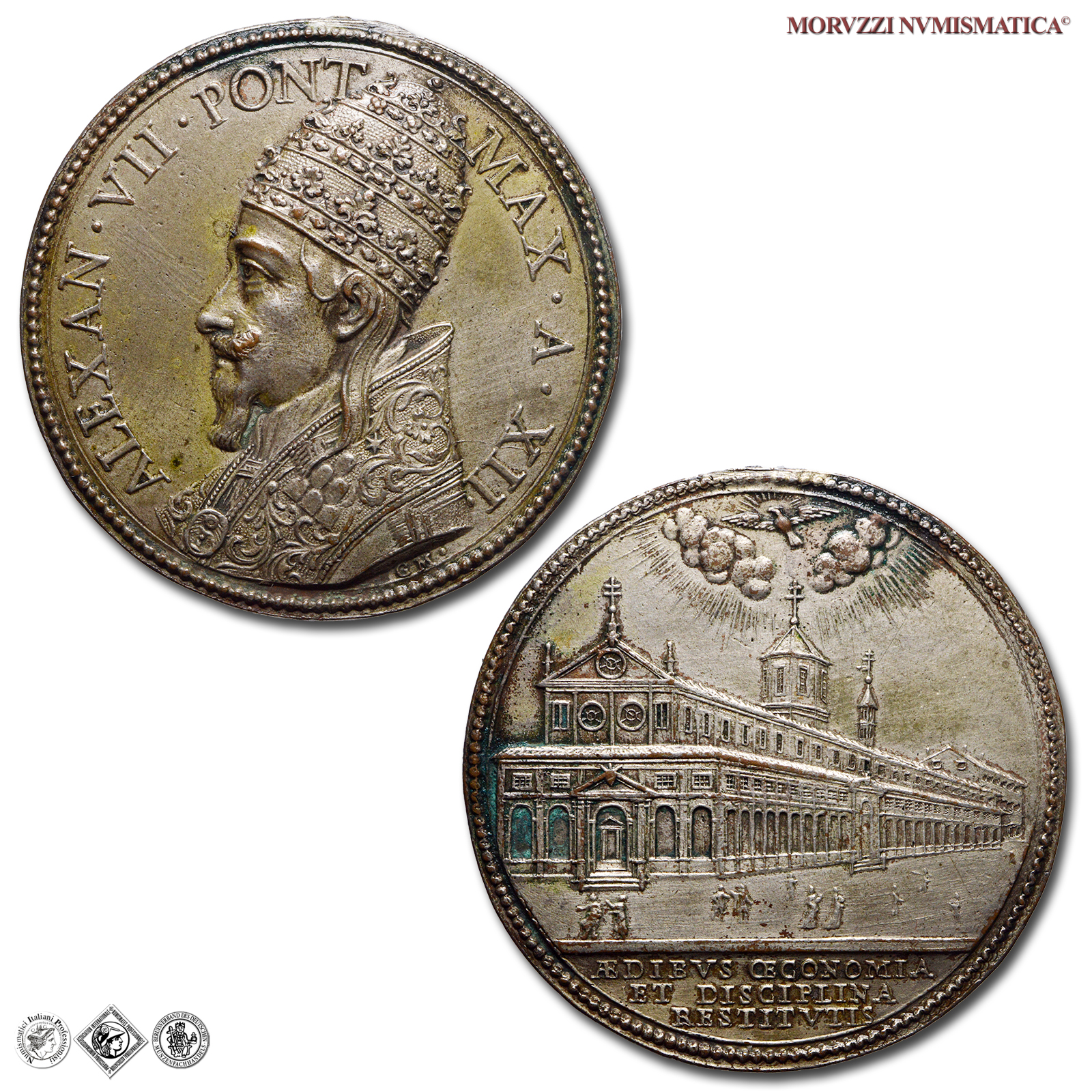 Stato Pontificio, ALESSANDRO VII, Chigi, MEDAGLIA ARGENTATA, L'ospedale di Santo Spirito in Sassia, 1666 A XII, Opus Gaspare Morone, mBB, (R), (Miselli 634) / medaglie papali pontificie rare (medaglia papale pontificia rara da collezione)