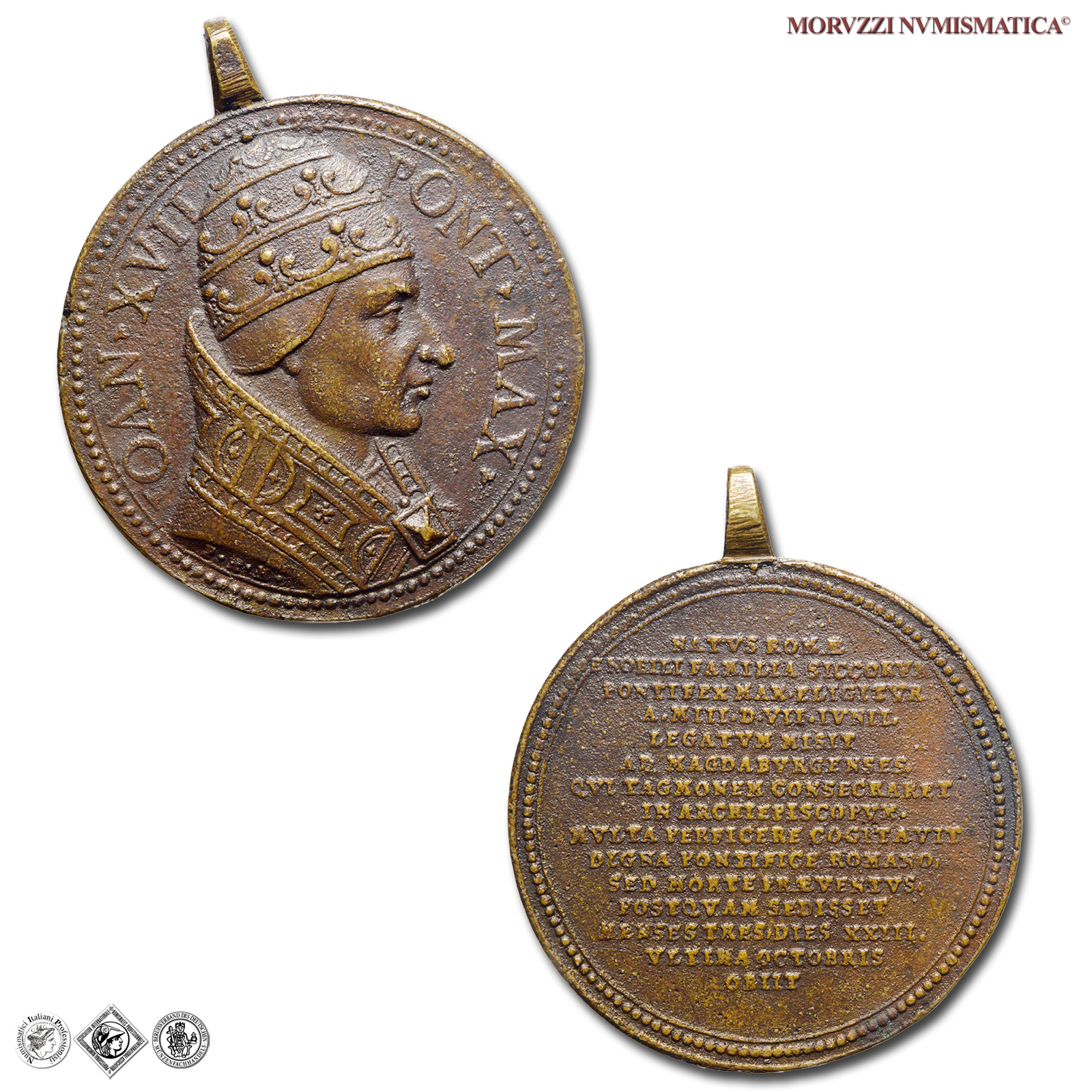 Stato Pontificio, GIOVANNI XVII, Sicco, MEDAGLIA FUSA IN BRONZO, 1700-1745, Opus Philipp Heirich Mueller, SPL, (Modesti CNORP I-140-17) / medaglie papali pontificie da collezione