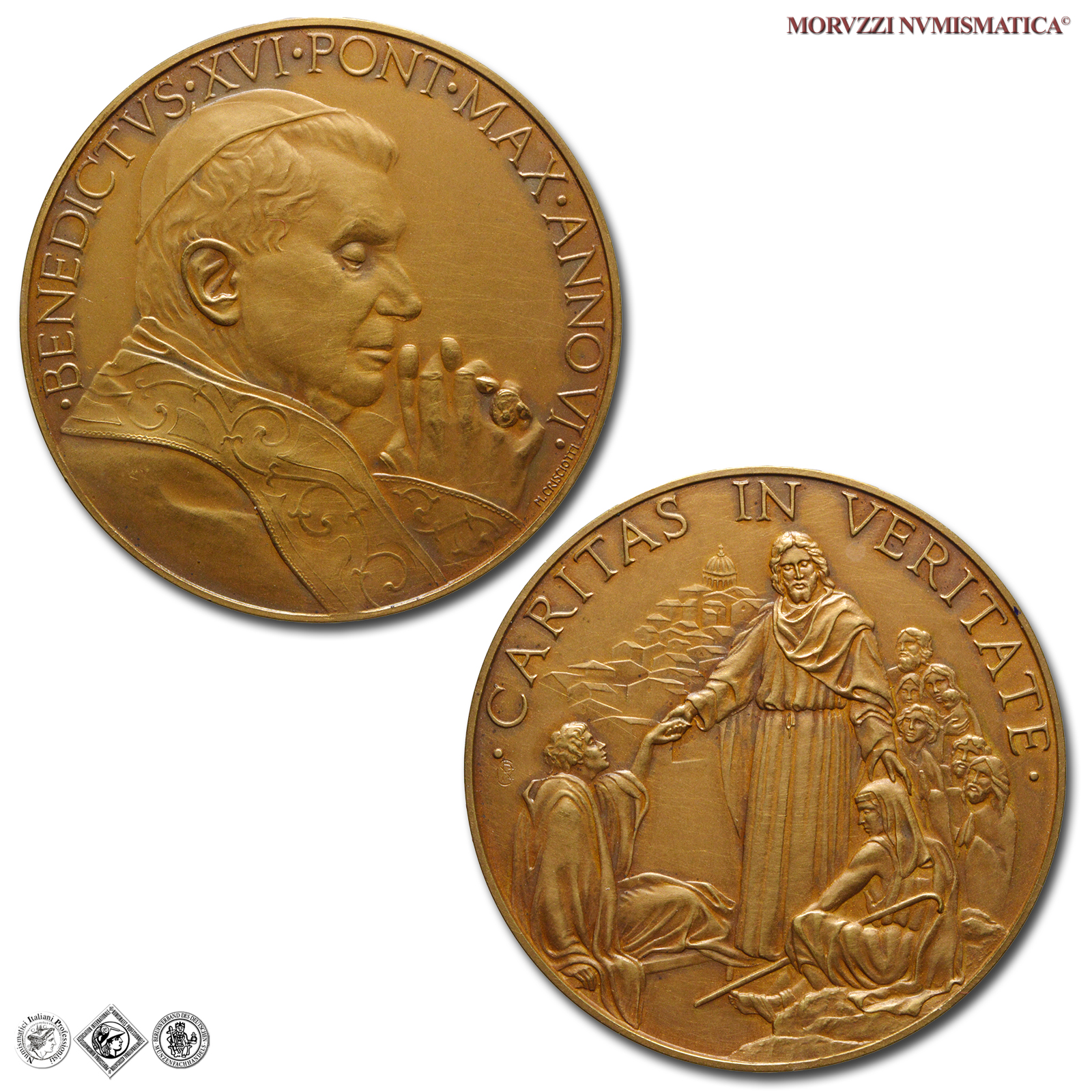 Città del Vaticano, BENEDETTO XVI, Ratzinger, MEDAGLIA ANNUALE IN BRONZO, Caritas in veritate, ANNO VI, Opus Mariangela Crisciotti, FDC / medaglie papali pontificie vaticane annuali da collezione