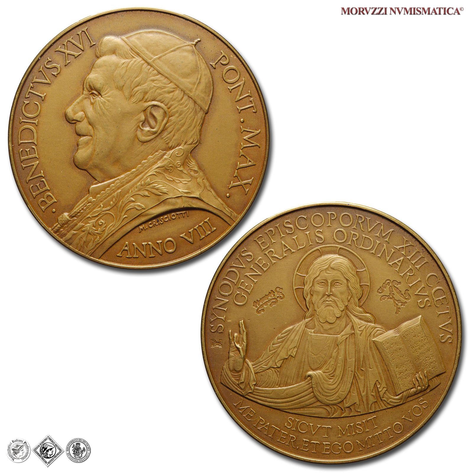 Città del Vaticano, BENEDETTO XVI, Ratzinger, MEDAGLIA ANNUALE IN BRONZO, Sinodo Episcopale, ANNO VIII, Opus Mariangela Crisciotti, FDC / medaglie papali pontificie vaticane annuali da collezione