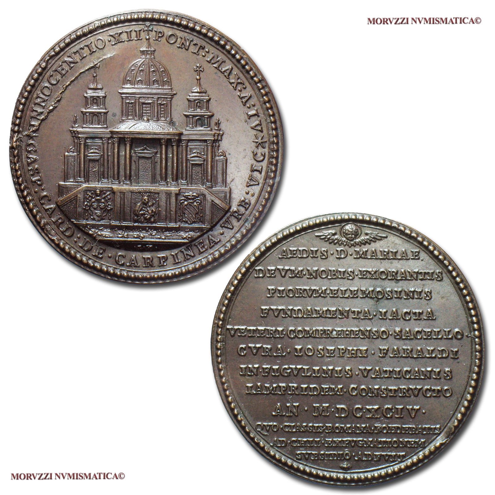 Stato Pontificio, INNOCENZO XII, MEDAGLIA STRAORDINARIA IN BRONZO, ANNO IV (1694), Chiesa di Santa Maria delle Fornaci, Opus Giovanni Hamerani, qFDC, (RR), (Miselli 368) / Pope Innocent XII Pignatelli BRONZE MEDALS (medaglie papali rare)