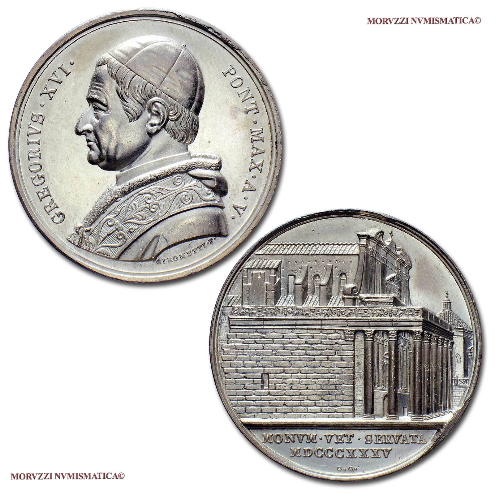 Stato Pontificio, GREGORIO XVI, MEDAGLIA ANNUALE IN ARGENTO, 1835, Tutela dei monumenti antichi (San Lorenzo in Miranda), Opus G. Girometti, FDC, (NC), (Bartolotti 835) / Pope Gregory XVI SILVER MEDALS (medaglie papali d'argento - medaglie pontificie)