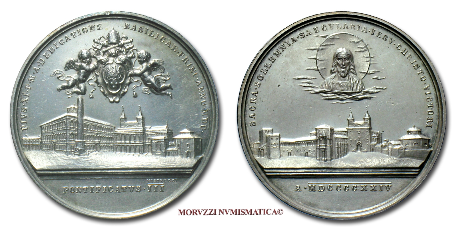 Città del Vaticano, PIO XI, MEDAGLIA STRAORDINARIA IN ARGENTO, 1924 ANNO III, XVI centenario della Basilica Lateranense, Opus Aurelio Mistruzzi, qFDC, (RR), (Cusumano-Modesti 23) / Pope Pius XI Ratti SILVER MEDALS (medaglie papali rare d'argento)