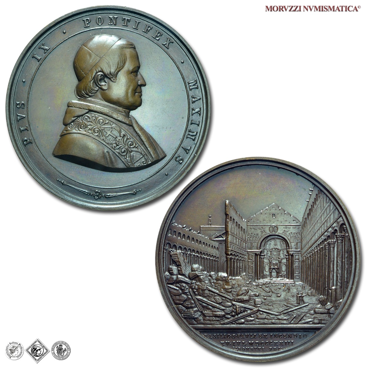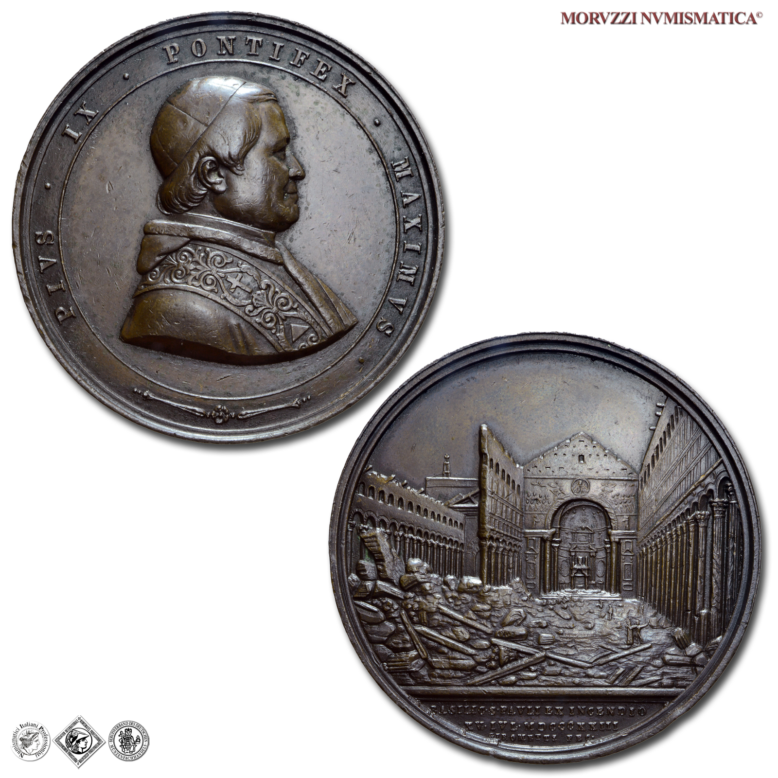 Stato Pontificio, PIO IX, Mastai Ferretti, MEDAGLIA STRAORDINARIA IN BRONZO, Senza data, Distruzione Basilica di San Paolo fuori le mura, Opus G. Cerbara e G. Girometti, qFDC, (Bartolotti SD43a) / medaglie papali pontificie straordinarie da collezione