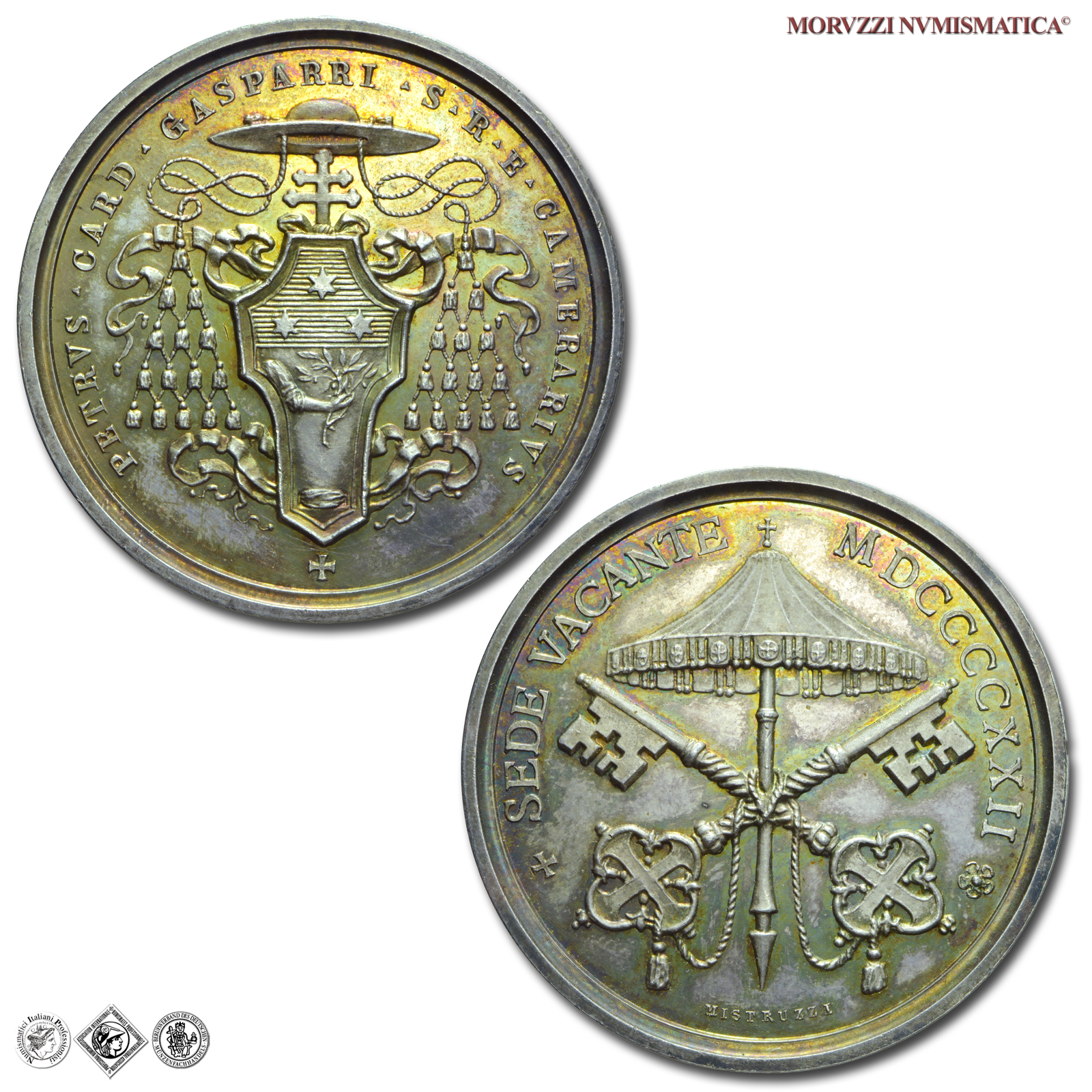Stato Pontificio, SEDE VACANTE 1922, MEDAGLIA IN ARGENTO, Camerlengo Cardinale Pietro Gasparri, FDC, (RR), (Boccia 114) / medaglie papali rare d'argento (medaglie pontificie delle sedi vacanti)