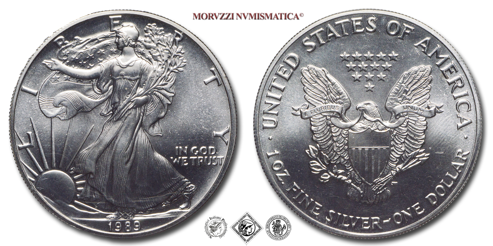 Stati Uniti, DOLLARO, American Eagle, 1989, Zecca di Philadelphia, ARGENTO, FDC, (KM 273) / USA - United States of America ONE DOLLAR (WORLD SILVER COINS - monete mondiali americane moderne - moneta mondiale americana moderna - dollari d'argento)
