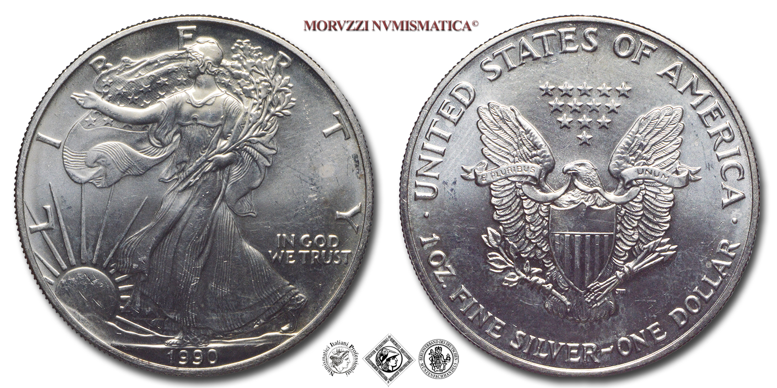 Stati Uniti, DOLLARO, American Eagle, 1990, Zecca di Philadelphia, ARGENTO, FDC, (KM 273) / USA - United States of America ONE DOLLAR (WORLD SILVER COINS - monete mondiali americane moderne - moneta mondiale americana moderna - dollari d'argento)