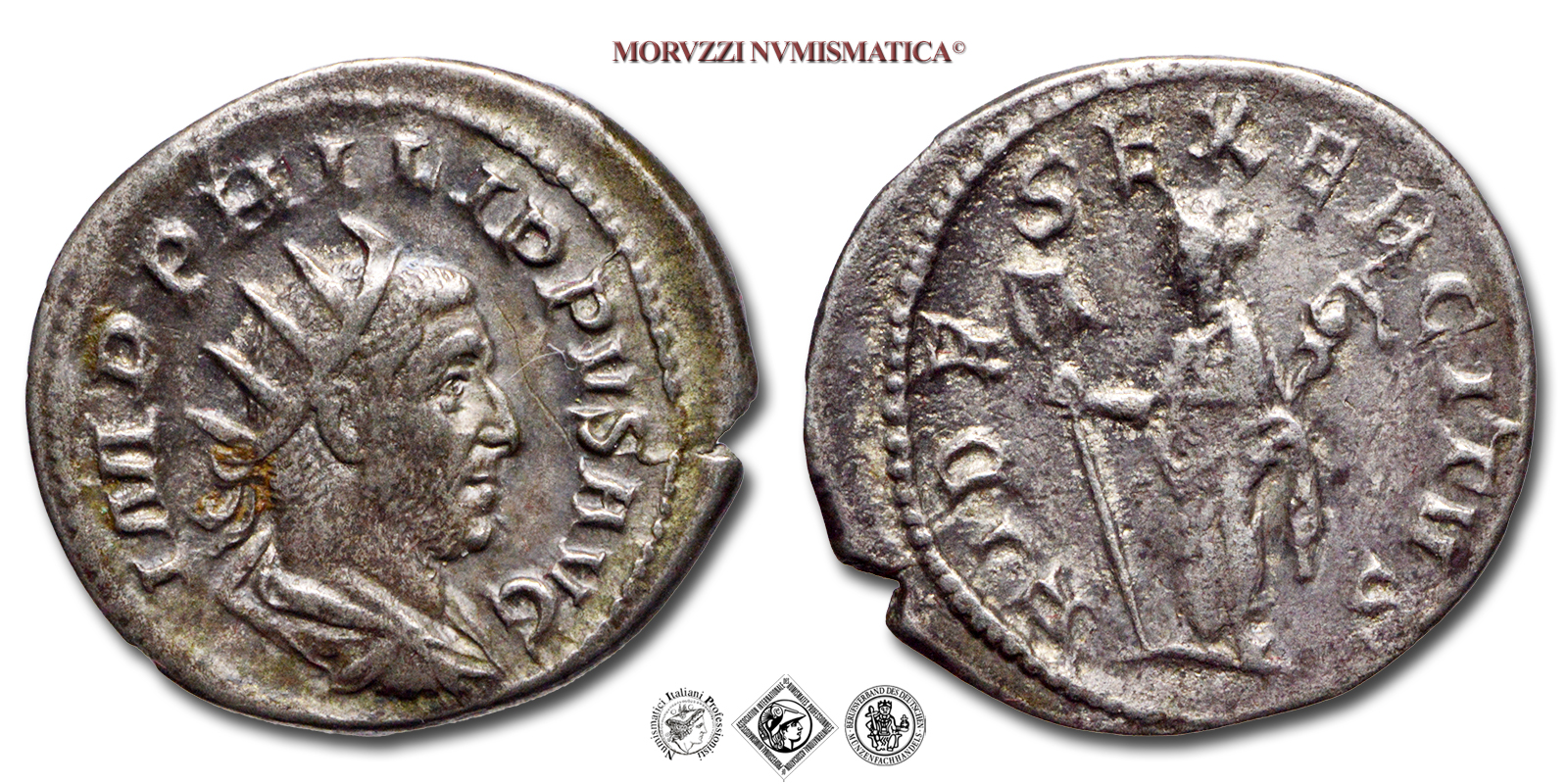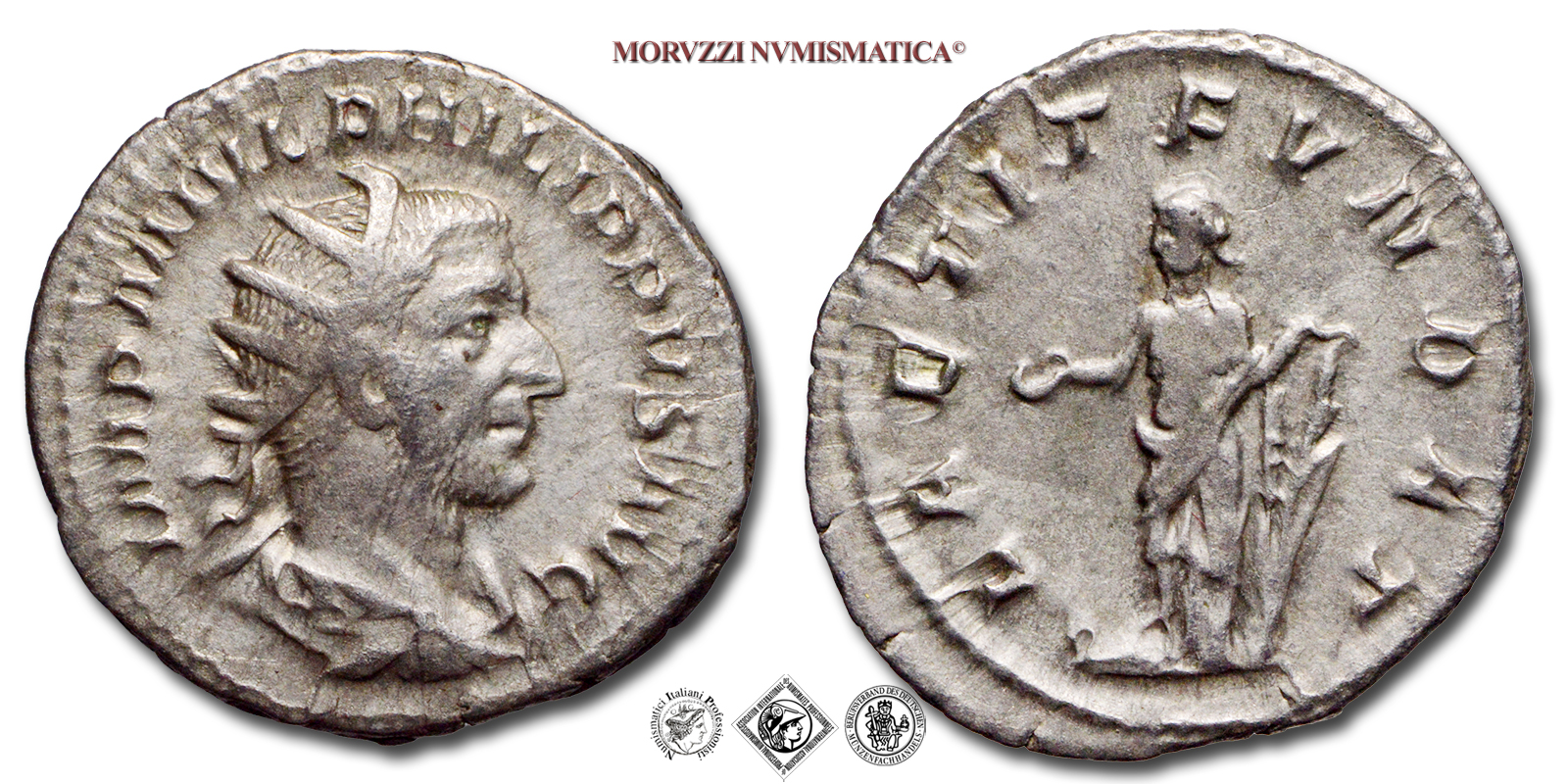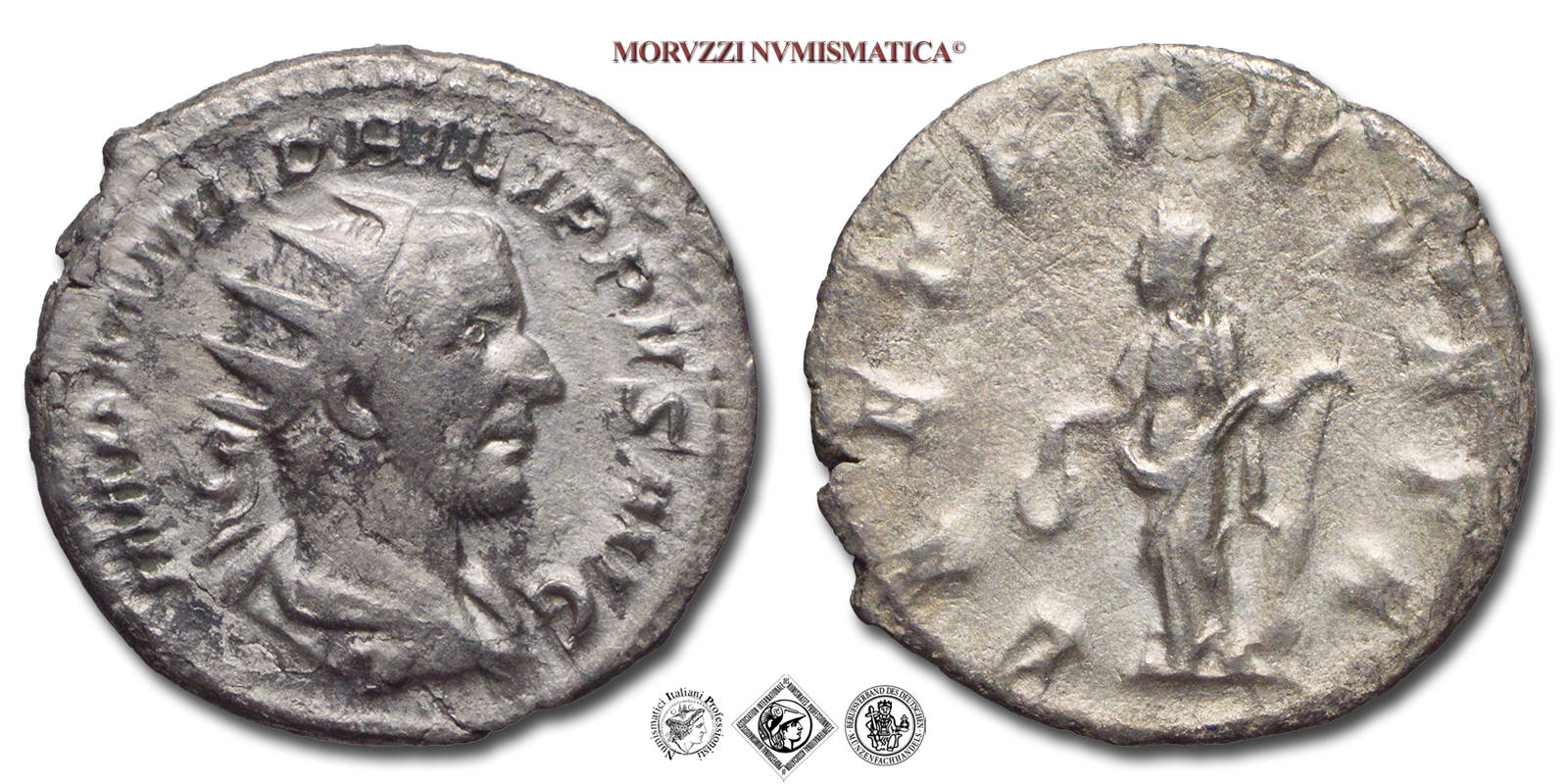 FILIPPO I L'ARABO, ANTONINIANO, 247-249 d.C., FIDES EXERCITVS la Fides con due insegne, Zecca di Roma, ARGENTO, BB, (RIC 61) / monete romane imperiali antiche d'argento (moneta romana imperiale antica - Impero Romano)