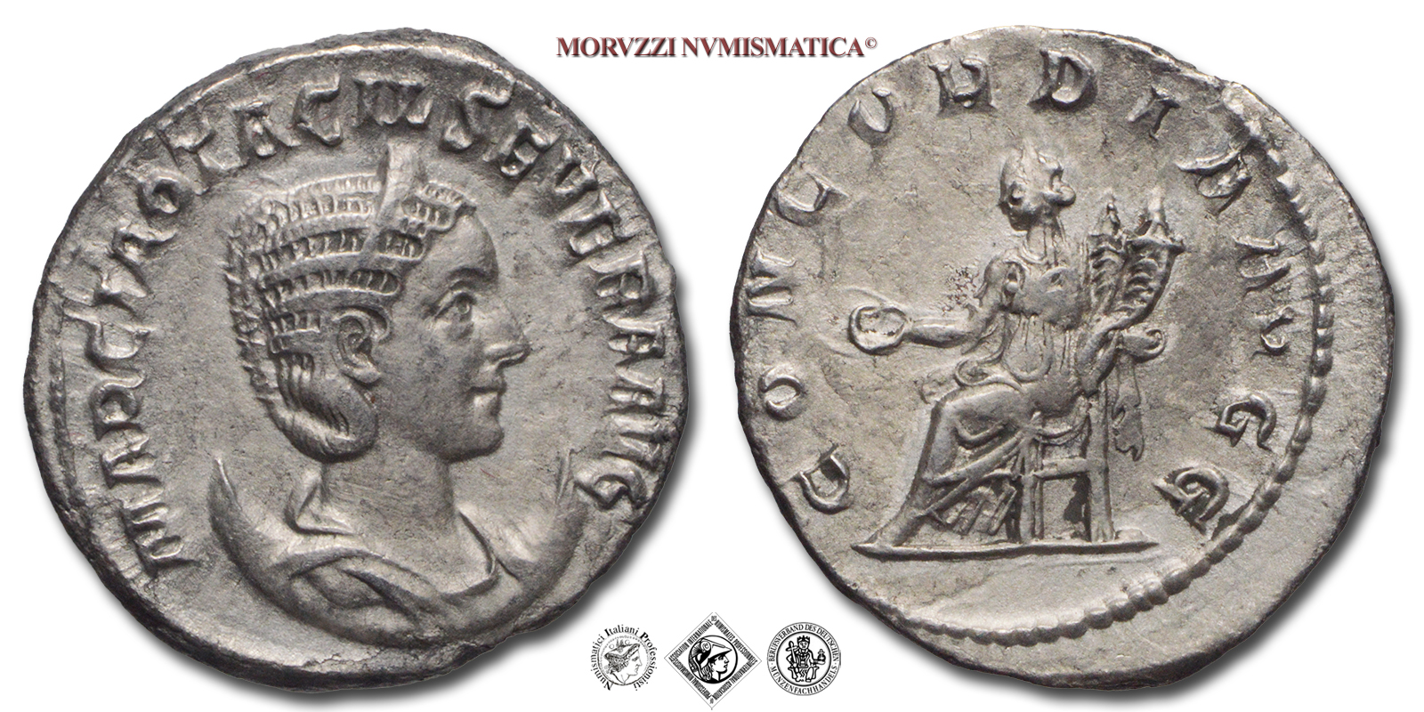 OTACILIA SEVERA, ANTONINIANO, 244-249 d.C., CONCORDIA AVGG la Concordia seduta con patera e cornucopia, Zecca di Roma, ARGENTO, SPL, (RIC 119b) / monete romane imperiali antiche d'argento (moneta romana imperiale antica - Impero Romano)