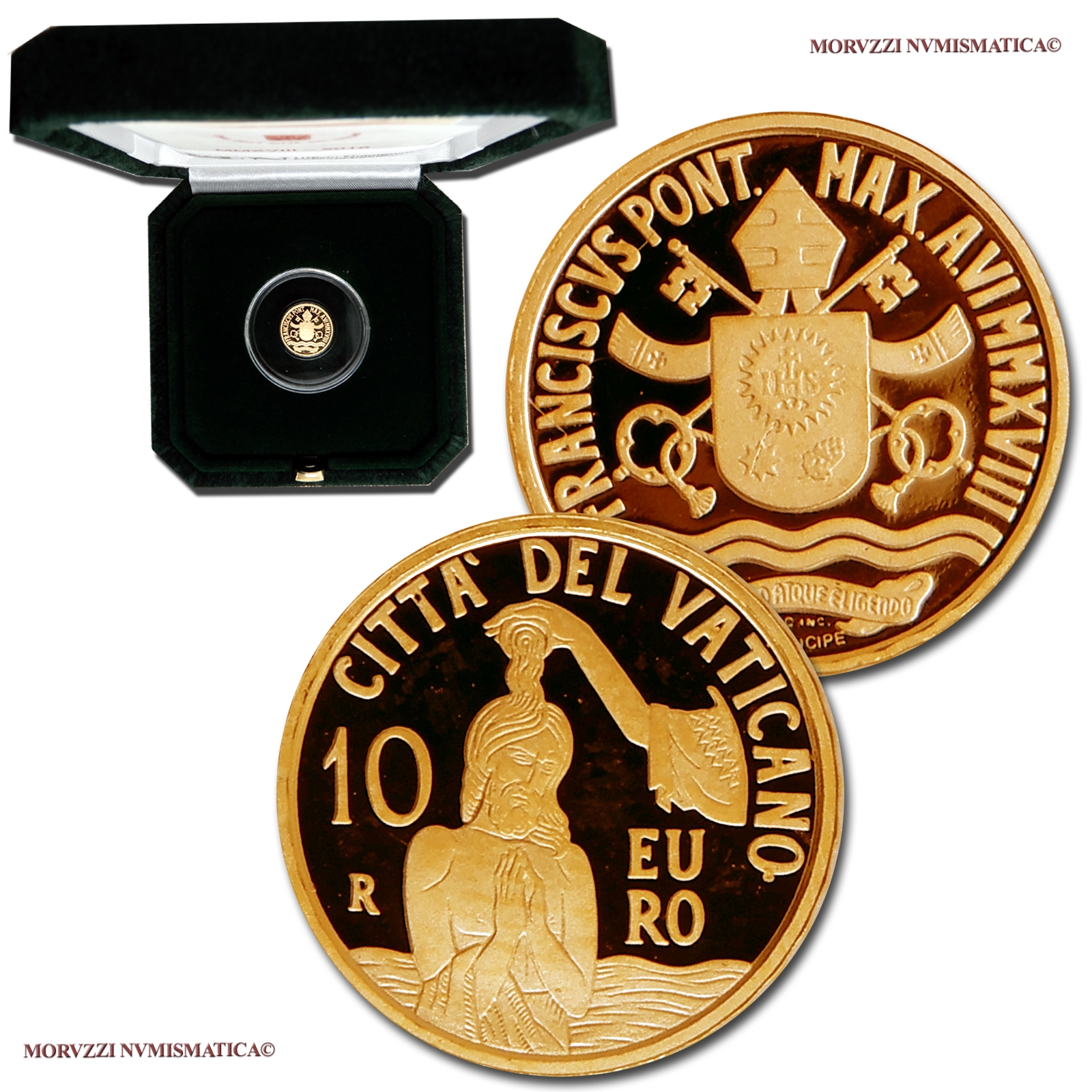 Città del Vaticano, 10 euro commemorativo 2018 FS, Sacramento del Battesimo, ORO / Vatican City State - Vatikanstadt - État de la Cité du Vatican 10 EUROS 2018 GOLD PROOF (10€) "10 euro" - monete d'oro del Vaticano