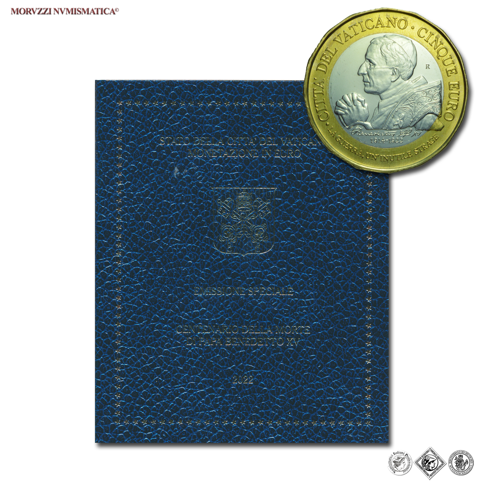 Città del Vaticano, SERIE DIVISIONALE 2022 FDC + 5 EURO BIMETALLICO Benedetto XV, 9 VALORI / SERIE DIVISIONALI EURO (Vatican City State Official BU Set / Vatikanstadt Original KMS / Série officielle en coffret) "serie divisionale"