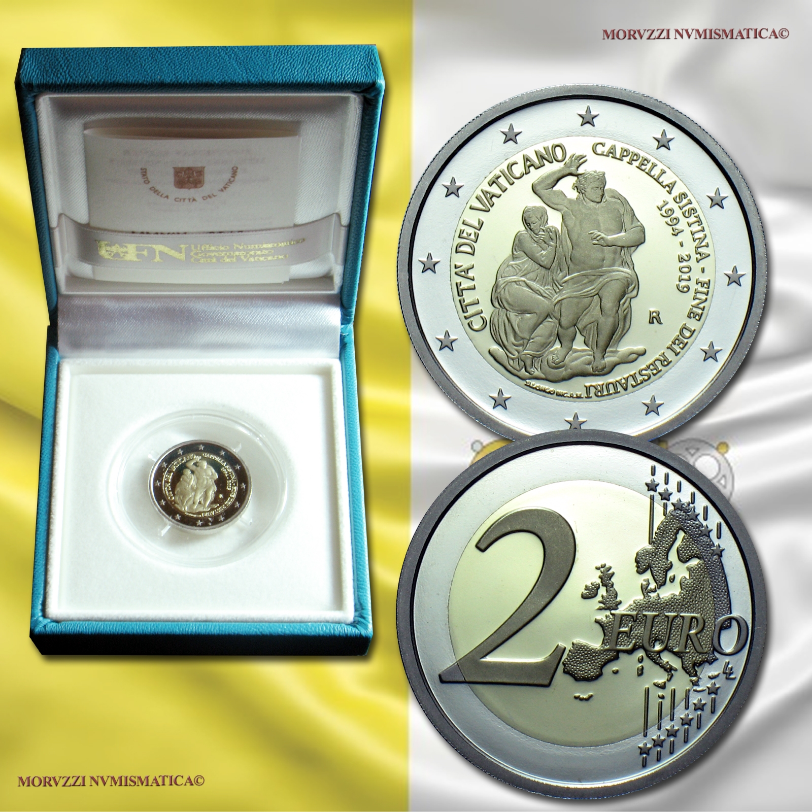 Città del Vaticano, 2 euro 2019 FS, 25º anniversario del Restauro della Cappella Sistina / monete vaticane di Papa Francesco (Sistine Chapel 2 EUROS PROOF - 2€ commemorative coins - "2 euro" commemorativi da collezione - moneta commemorativa da due euro)