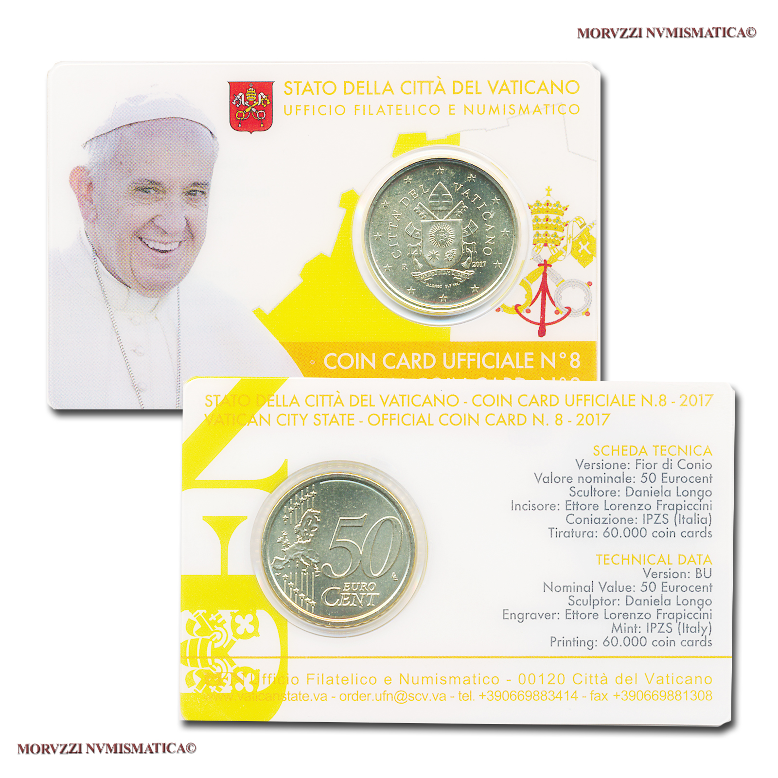 Città del Vaticano, FRANCESCO I, Bergoglio, 50 CENTESIMI, 2017, FDC, VATICAN CITY COIN CARD 8