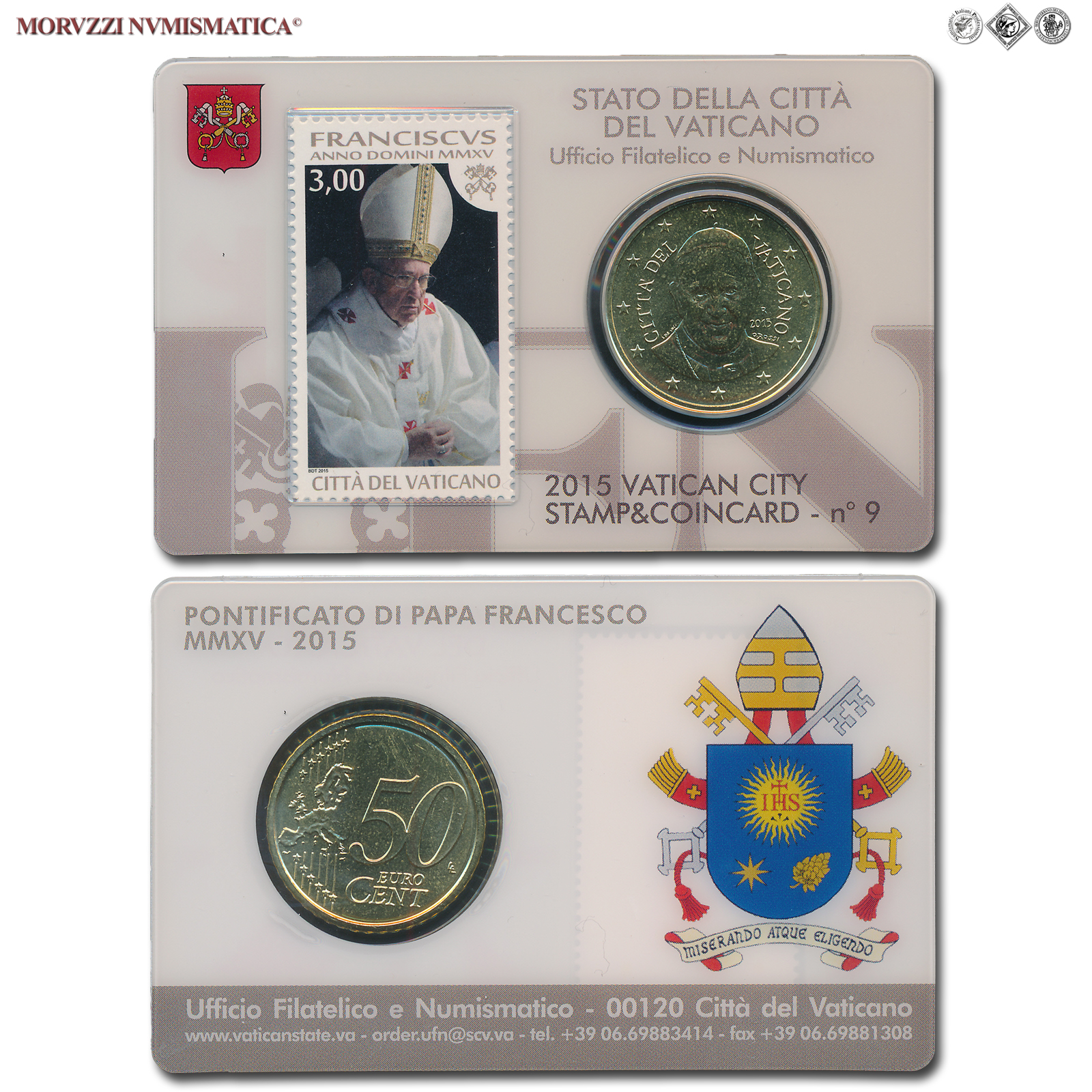 Città del Vaticano, FRANCESCO I, Bergoglio, 50 centesimi 2015 e francobollo da 3,00 euro / VATICAN CITY STAMP & COIN CARD n. 9
