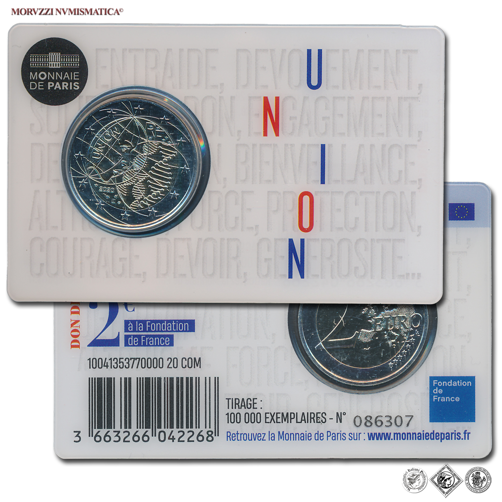 Francia, 2 EURO 2020 FDC, Ricerca Medica in coincard (Union) / France 2 EUROS BU (2€ commemorative coins - "2 euro" commemorativi - monete commemorative in euro - due euro da collezione) Stempelglanz - Frankreich