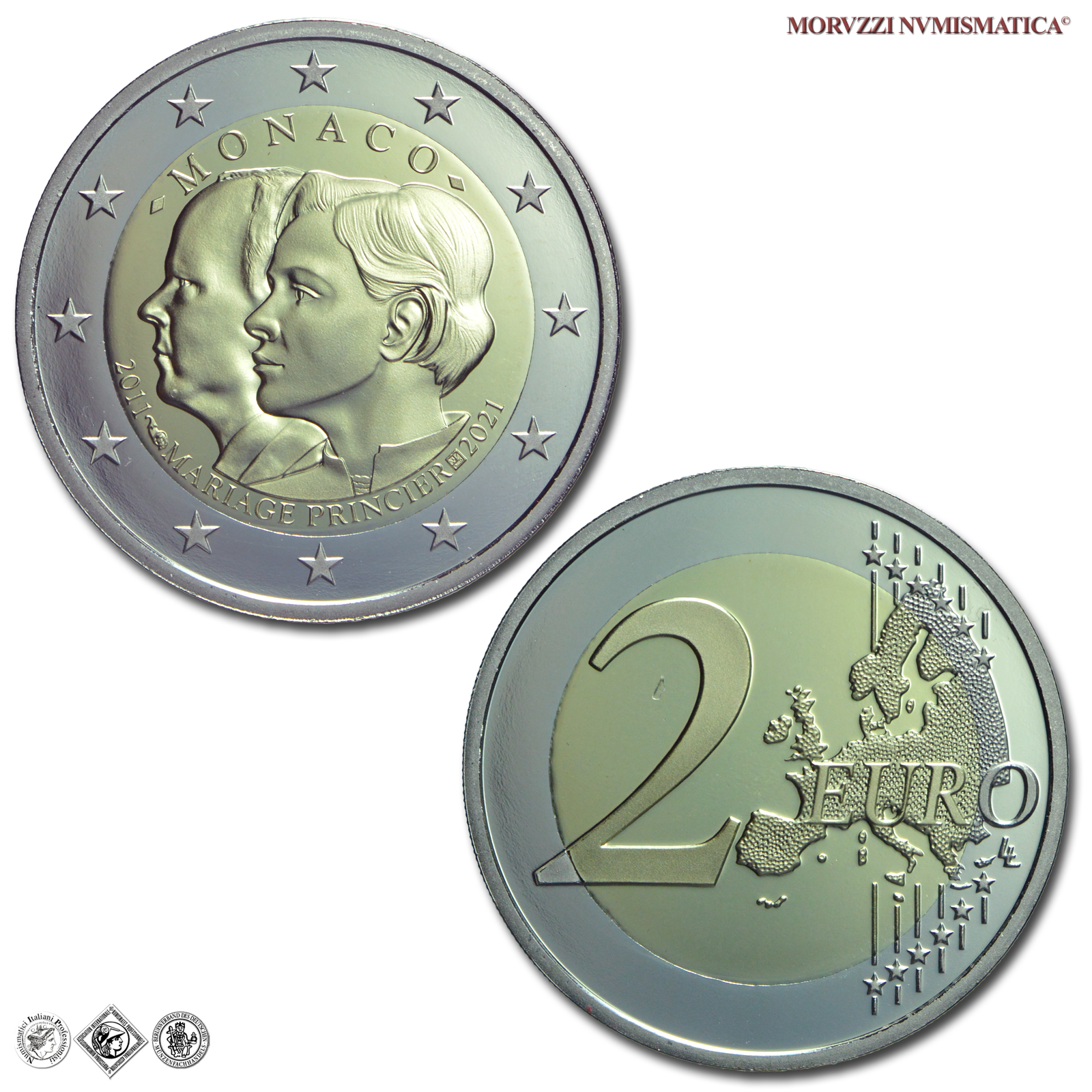 Monaco, 2 EURO 2021 FS, 10° anniversario del matrimonio tra il principe Alberto II e Charlène Wittstock / 2 EUROS PROOF (2€ commemorative coins - "2 euro" commemorativi - monete commemorative - moneta da due euro) Belle Épreuve - OFFERTA SPECIALE