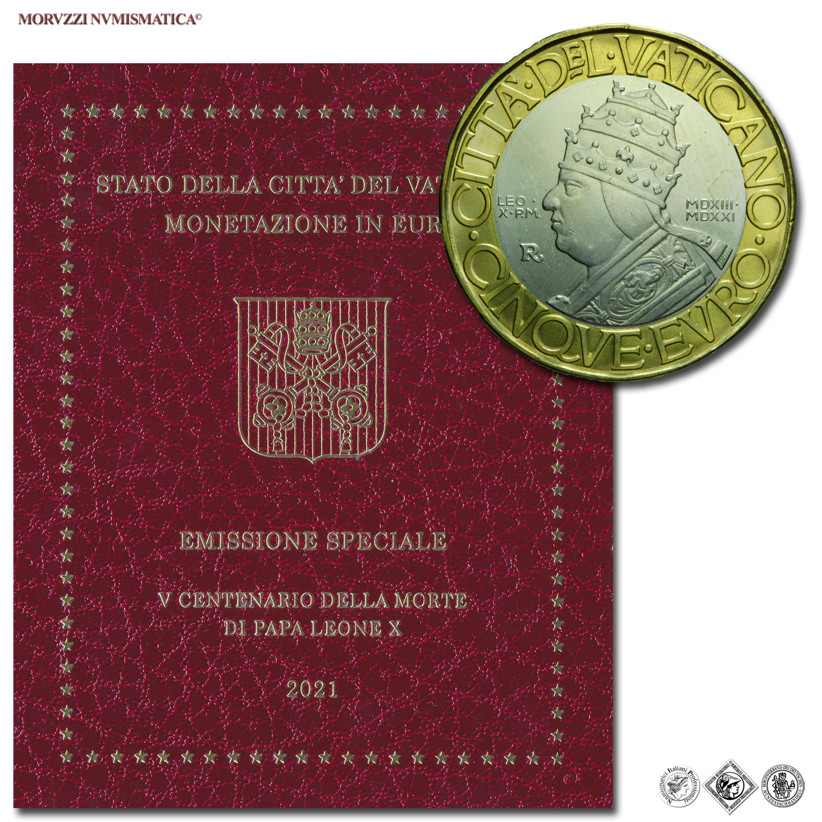 Città del Vaticano, SERIE DIVISIONALE 2021 FDC + 5 EURO BIMETALLICO Leone X, 9 VALORI / SERIE DIVISIONALI EURO (Vatican City State Official BU Set / Vatikanstadt Original KMS / État de la Cité du Vatican Série officielle en coffret) "serie divisionale"