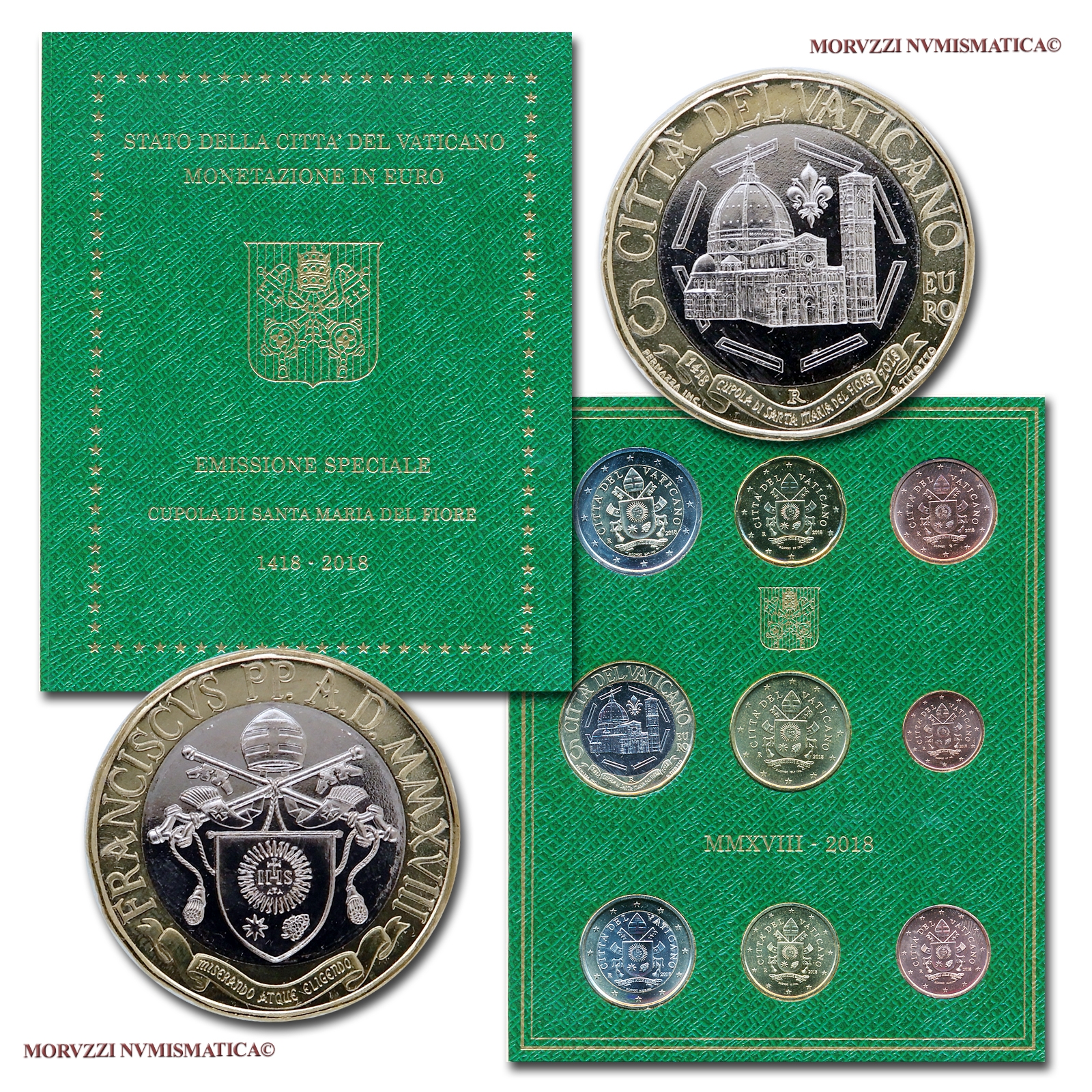Città del Vaticano, SERIE DIVISIONALE 2018 FDC + 5 EURO 600° anniversario di Santa Maria del Fiore, 9 VALORI / SERIE DIVISIONALI EURO BU "serie divisionale" - OFFERTA SPECIALE